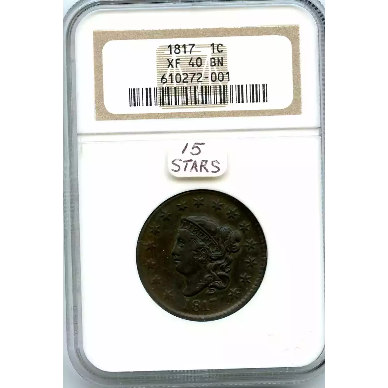 512386 | 1817-XF-40 Large Cents Coronet Head NGC XF-40 | NGC | XF-40 | Sold: 12/03/2019 | $550 |