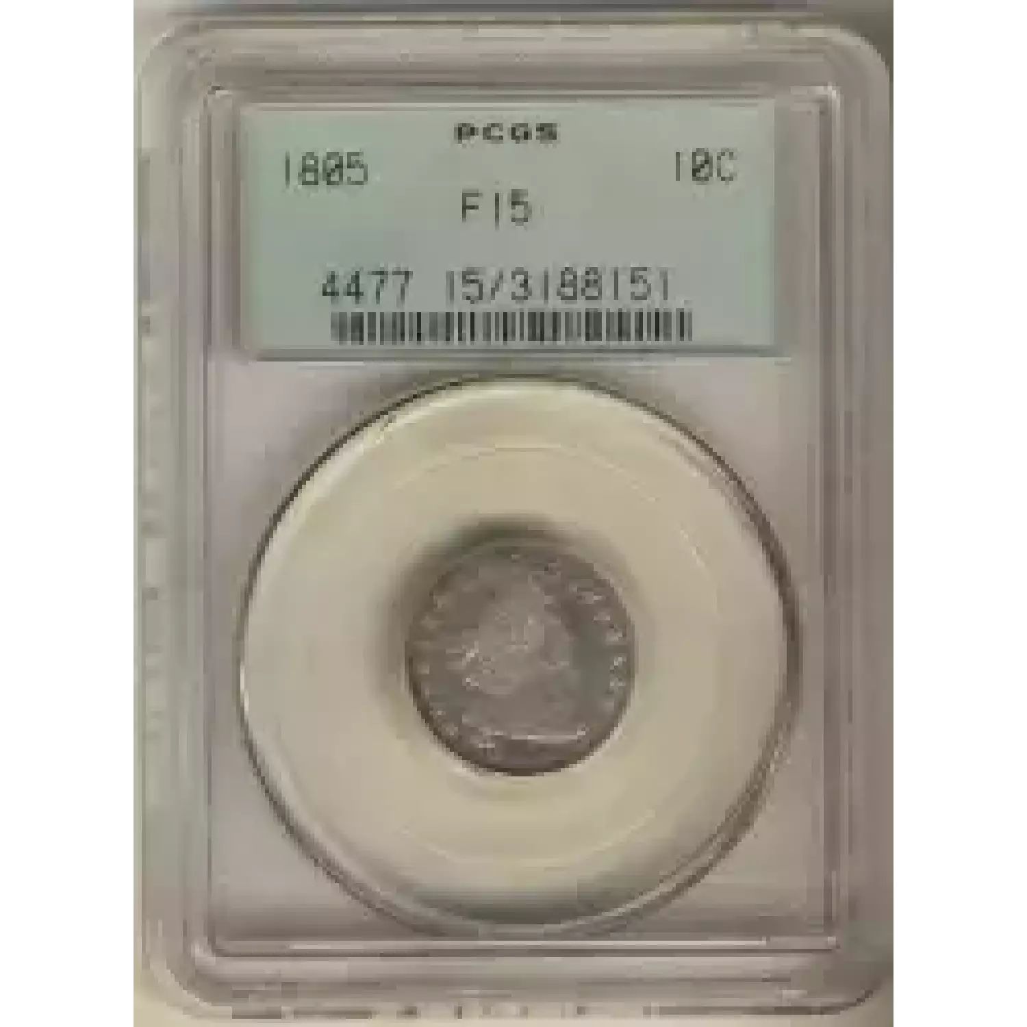 505000 | 1805-F-15 Dimes Draped Bust PCGS F-15 | PCGS | F-15 | Sold: 21/03/2010 | $1,725 |