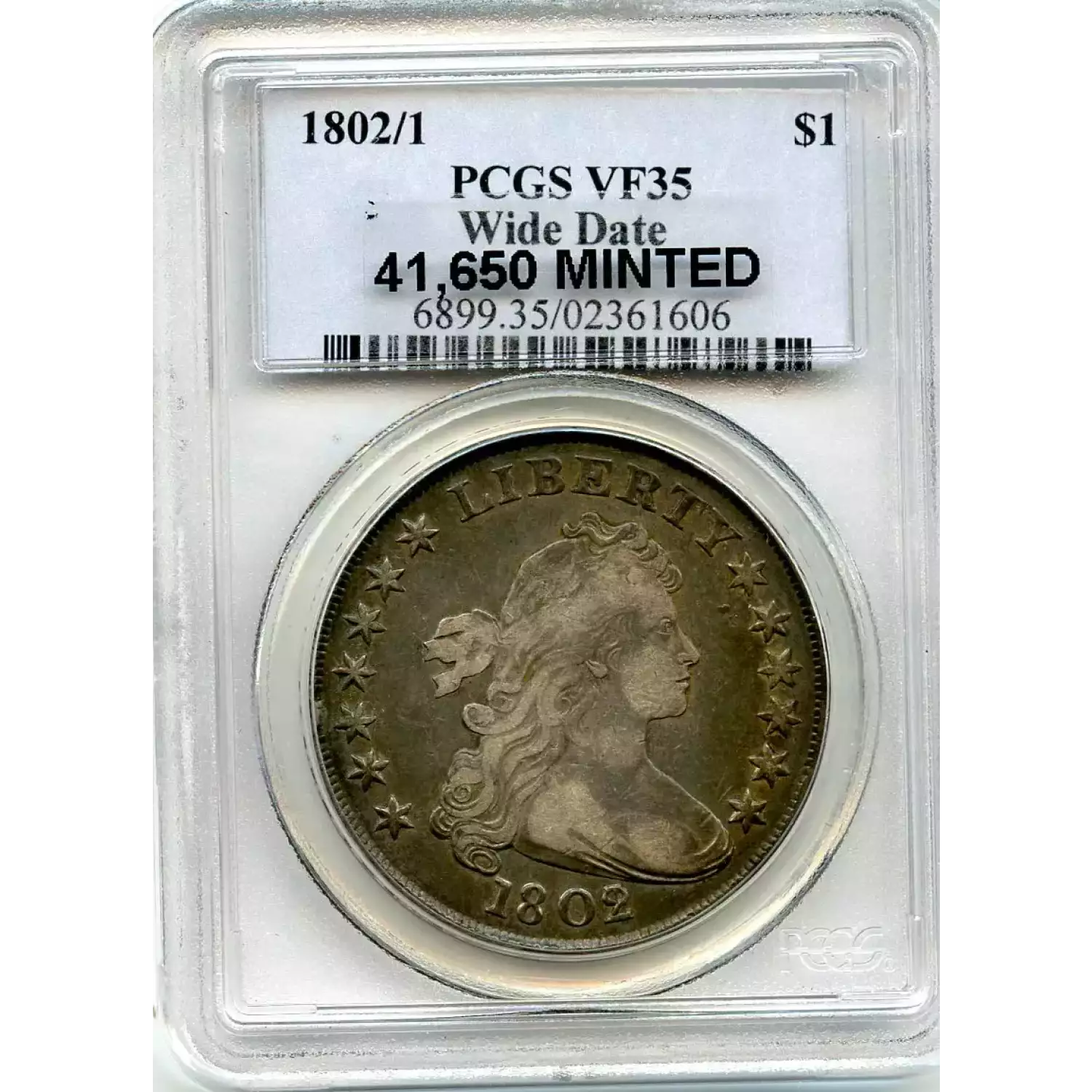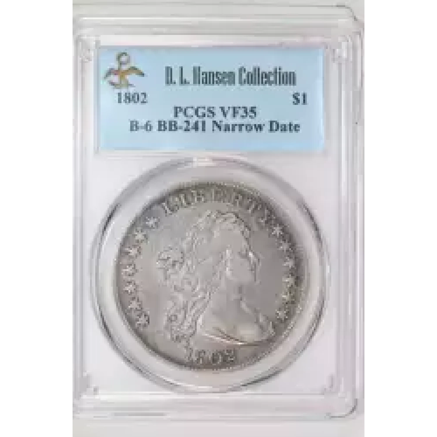 501502 | 1802 Silver Dollars Draped Bust PCGS VF-35 B-6 BB-241 | PCGS | VF-35 | Sold: 01/06/2022 | $3,650 |