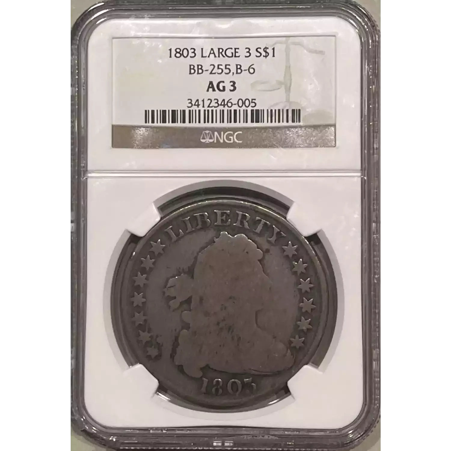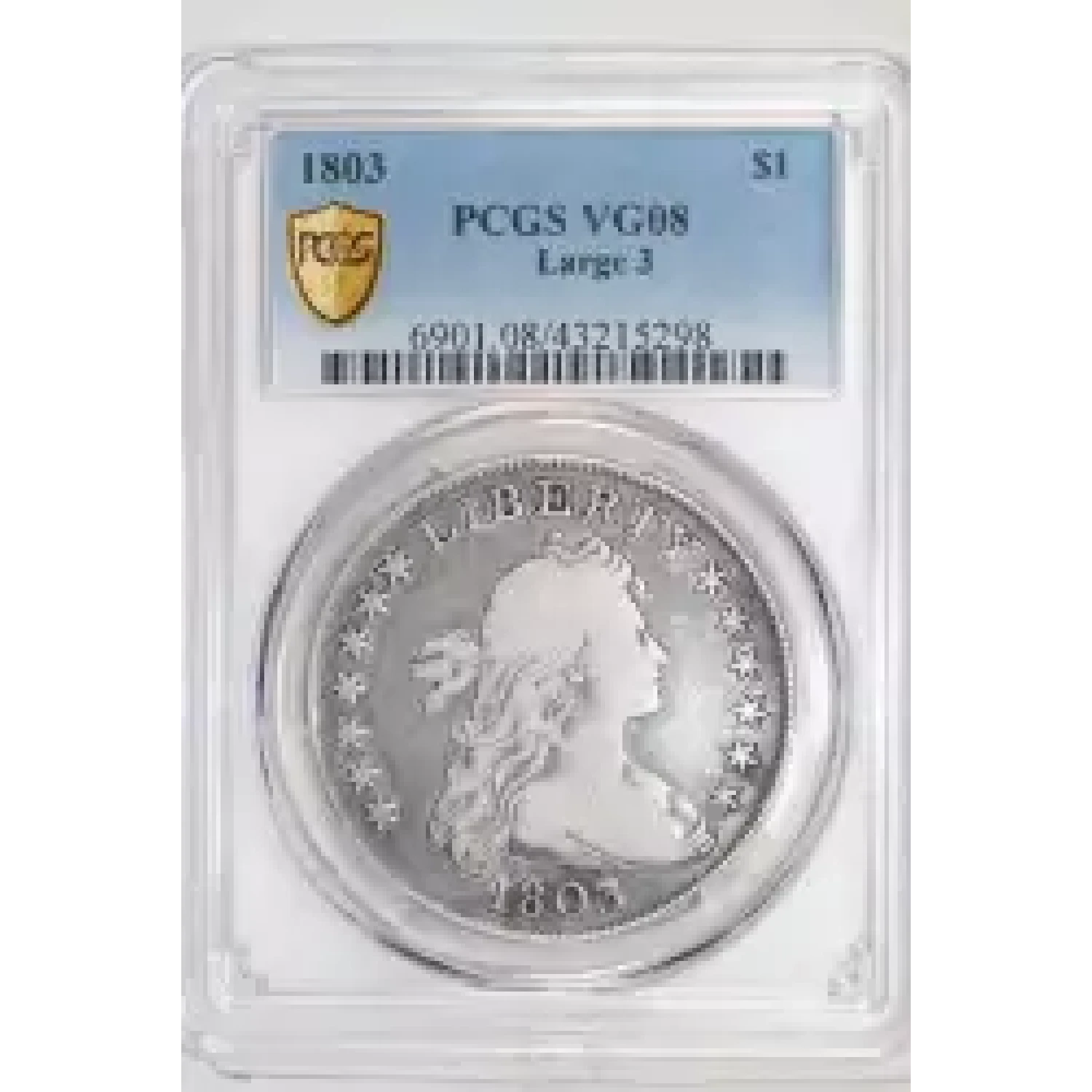 501942 | 1803 Silver Dollars Draped Bust PCGS VG-8 Large 3 | PCGS | VG-8 | Sold: 09/09/2022 | $1,850 |