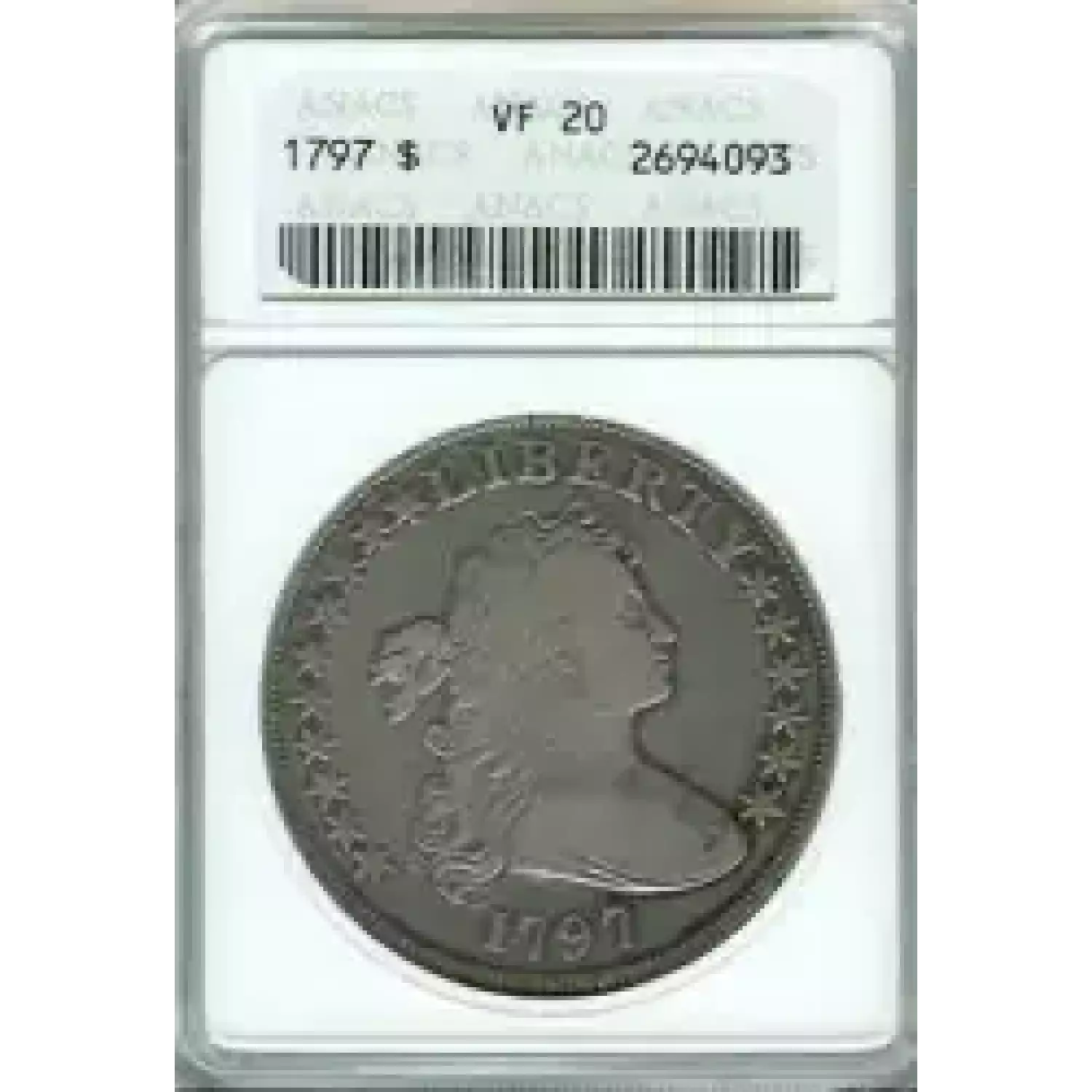 503133 | 1797-VF-20 Silver Dollars Draped Bust ANACS VF-20 | ANACS | VF-20 | Sold: 30/11/2005 | $3,749 |