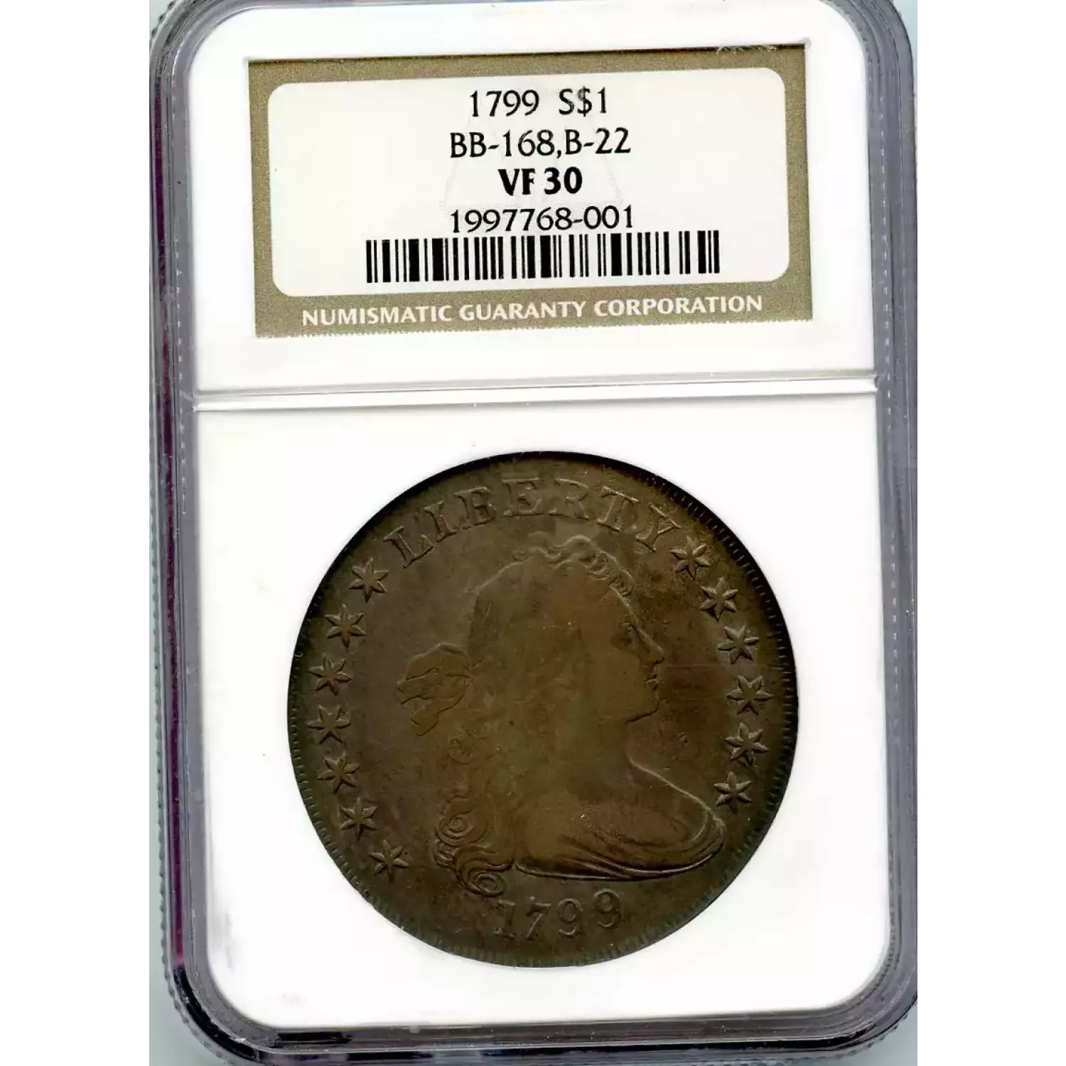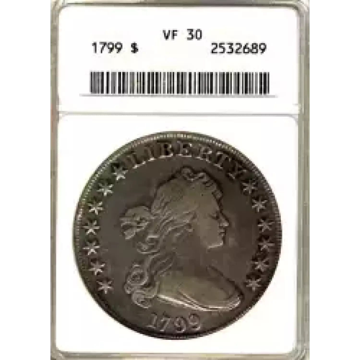 512466 | 1799-VF-30 Silver Dollars Draped Bust NGC VF-30 | NGC | VF-30 | Sold: 07/07/2019 | $1,980 |