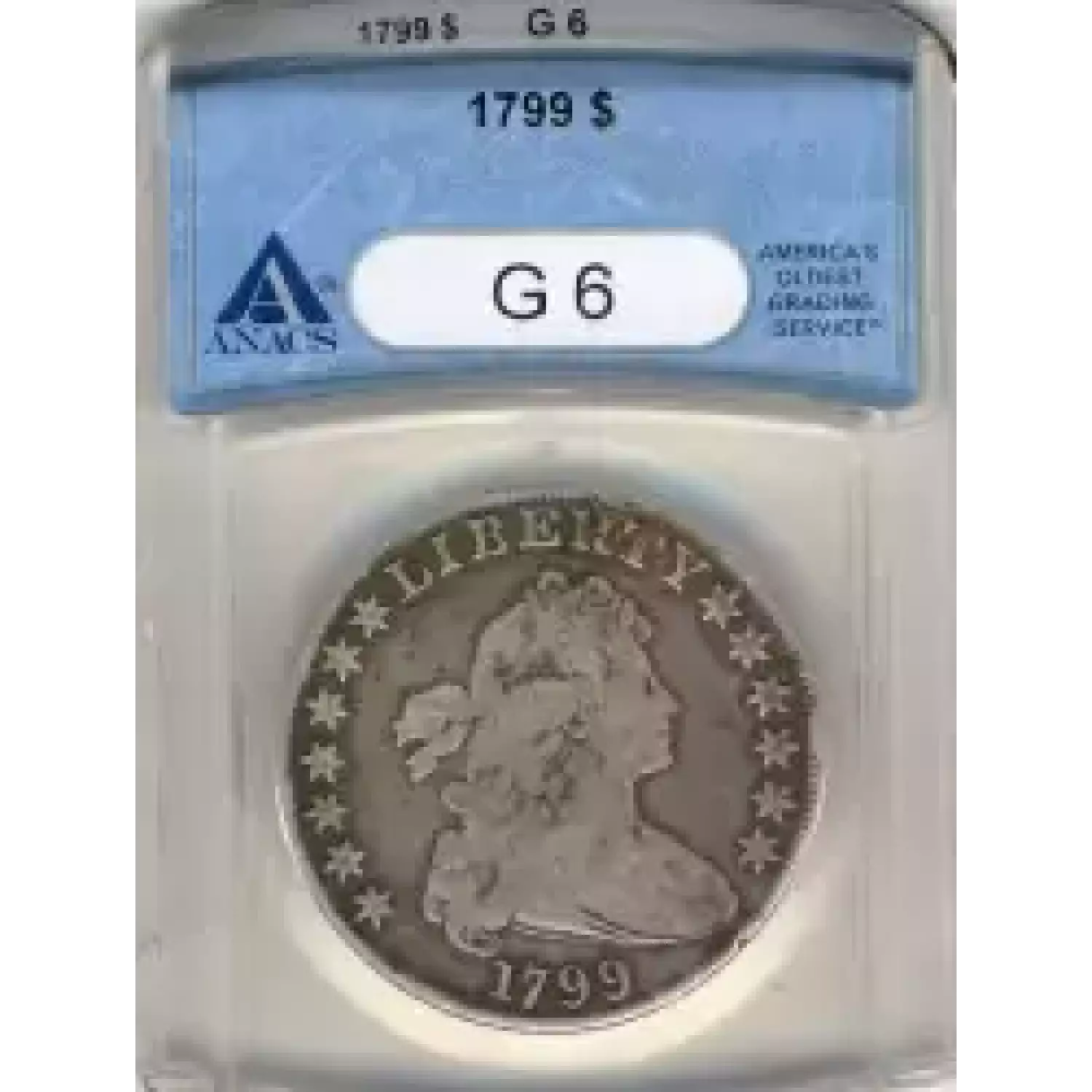 503817 | 1799-G-6 Silver Dollars Draped Bust ANACS G-6 | ANACS | G-6 | Sold: 13/01/2007 | $850 |