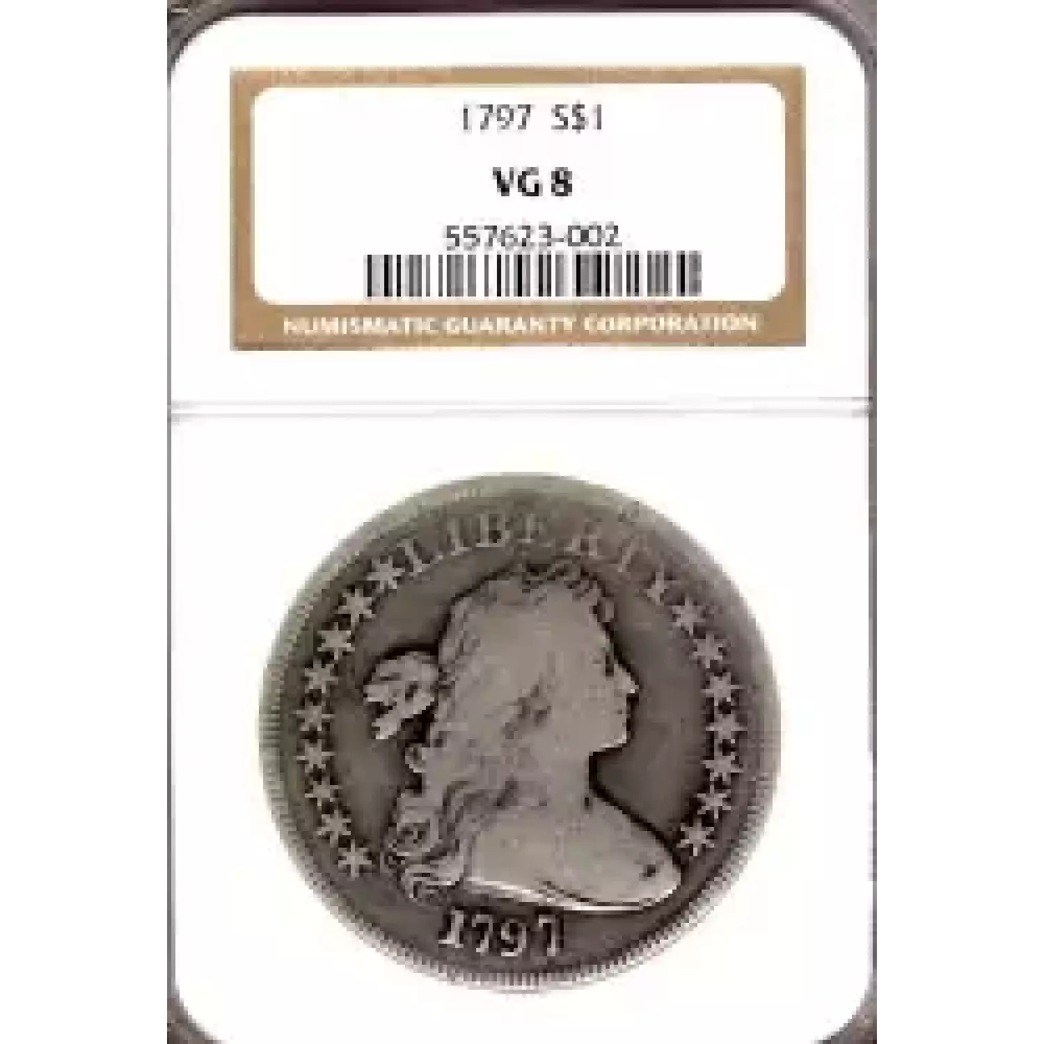 504023 | 1797-VG-8 Silver Dollars Draped Bust NGC VG-8 | NGC | VG-8 | Sold: 17/04/2007 | $1,950 |
