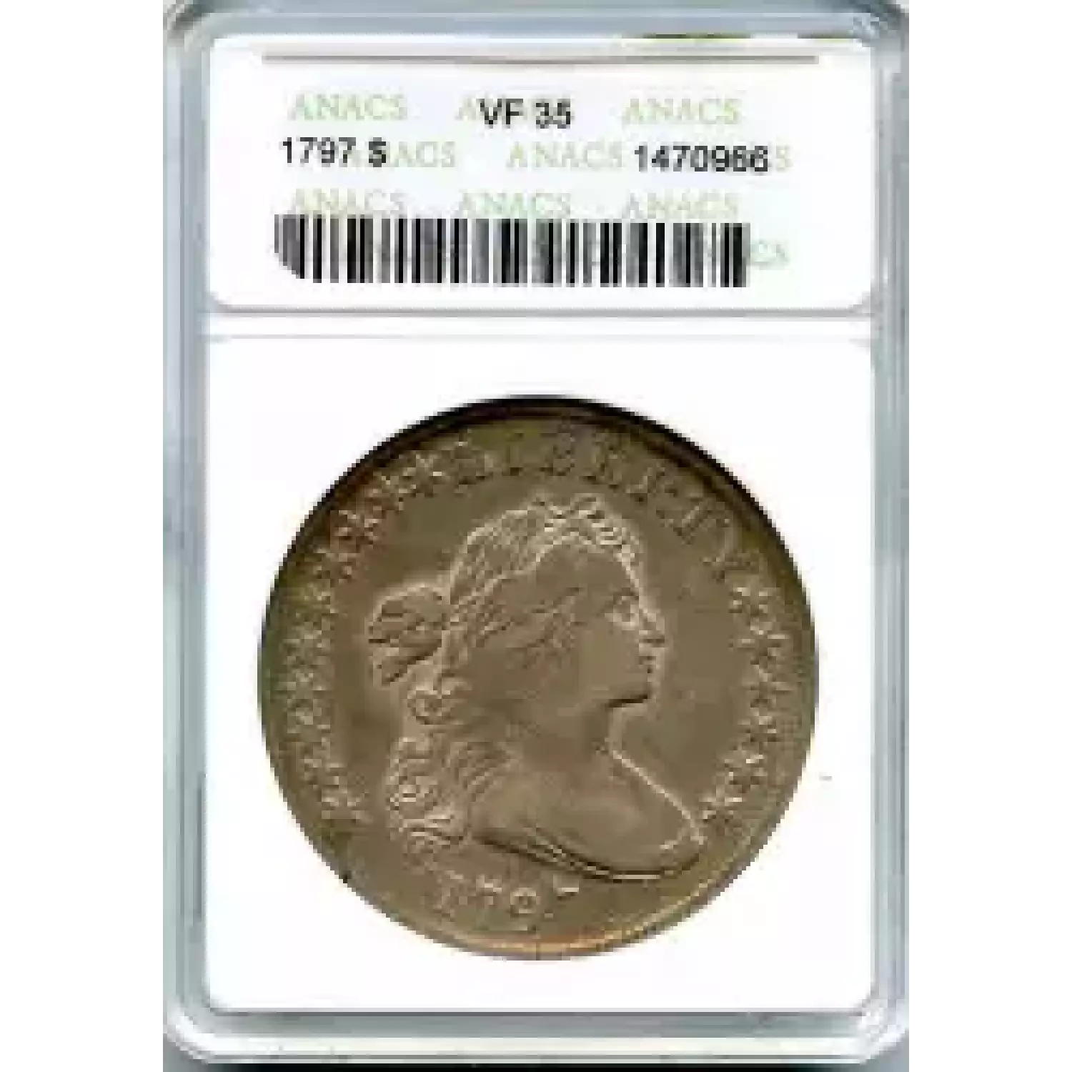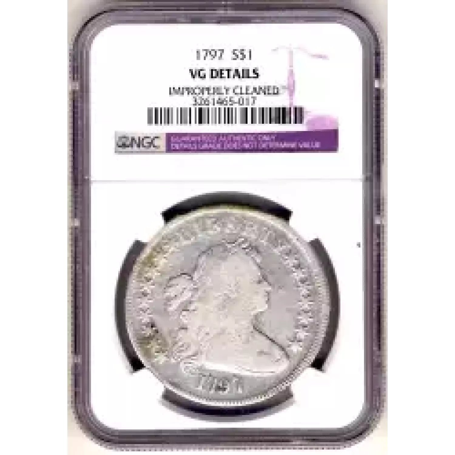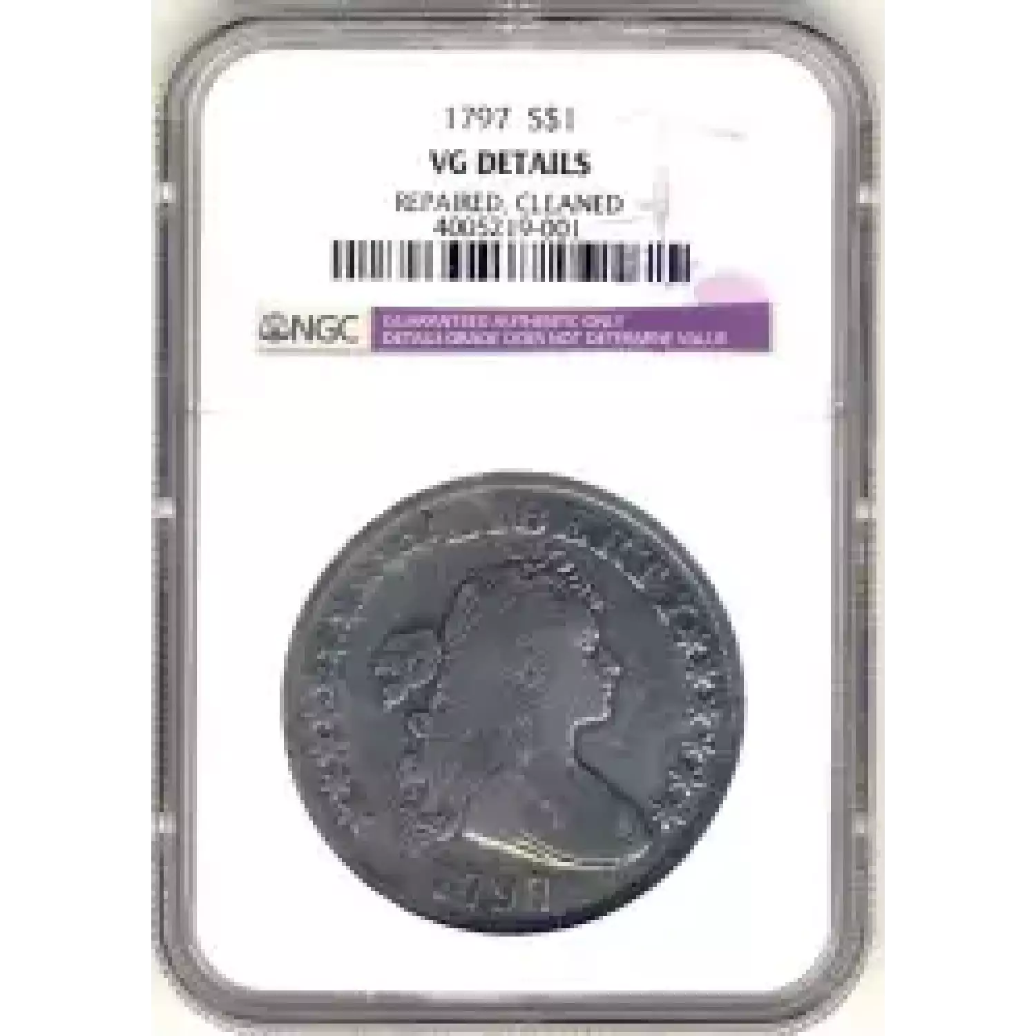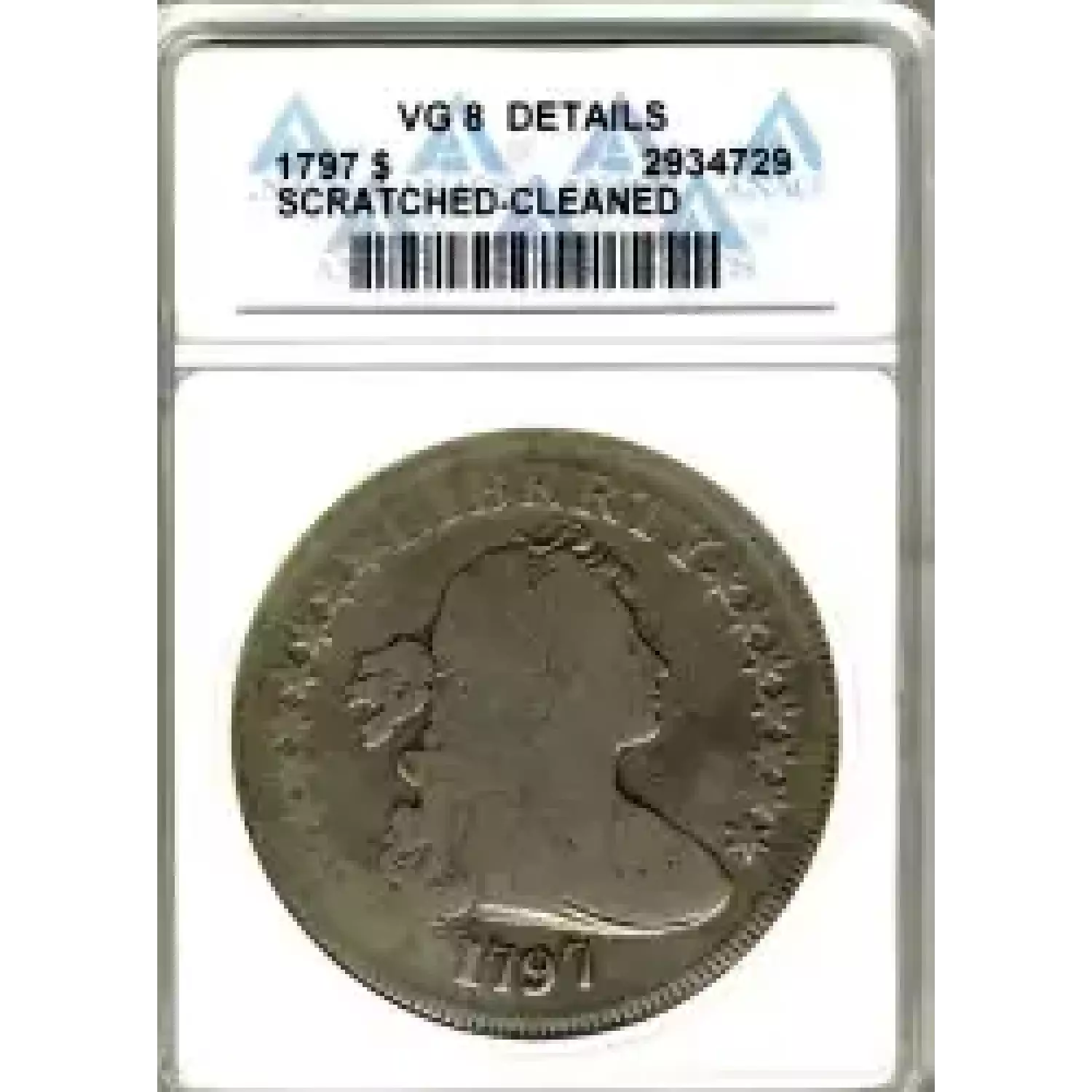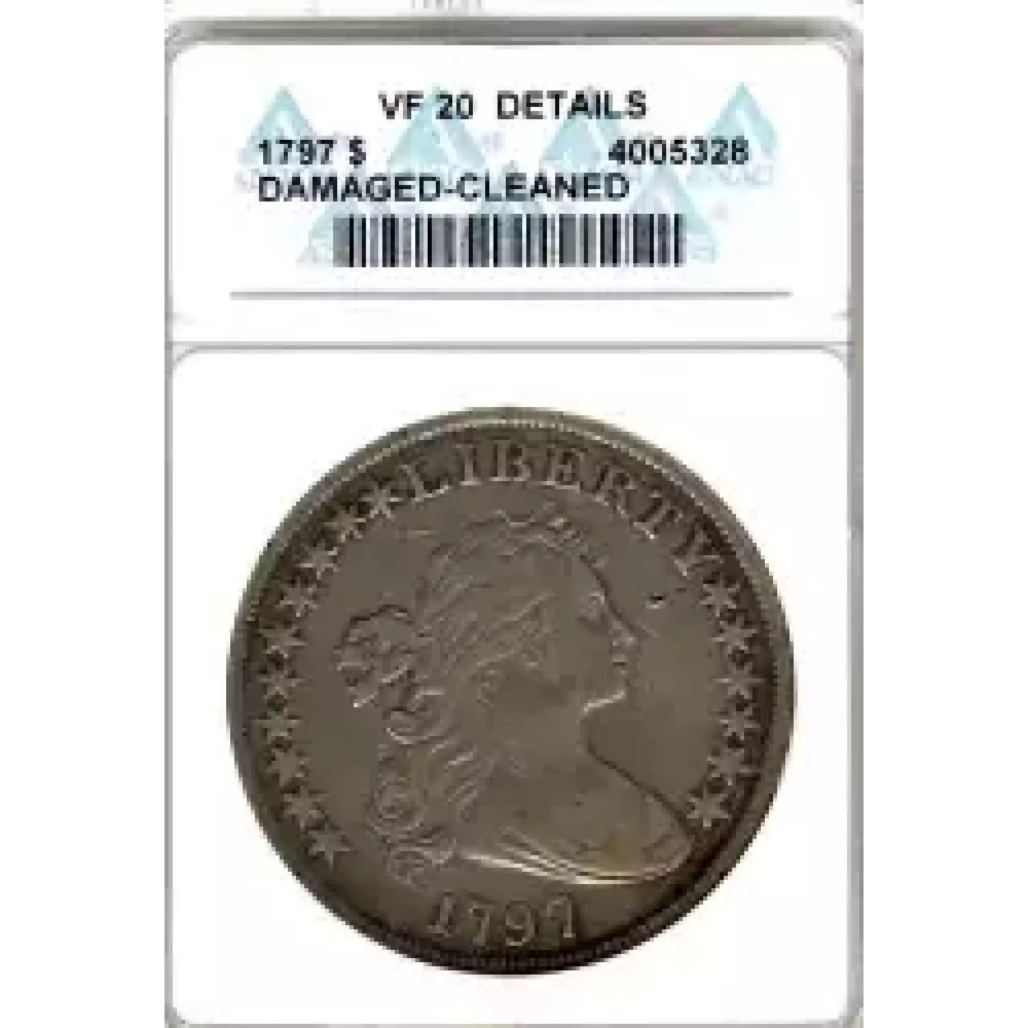 504216 | 1797-VF Details Silver Dollars Draped Bust ANACS VF Details Damaged Cleaned | ANACS | VF Details | Sold: 16/10/2008 | $3,000 |