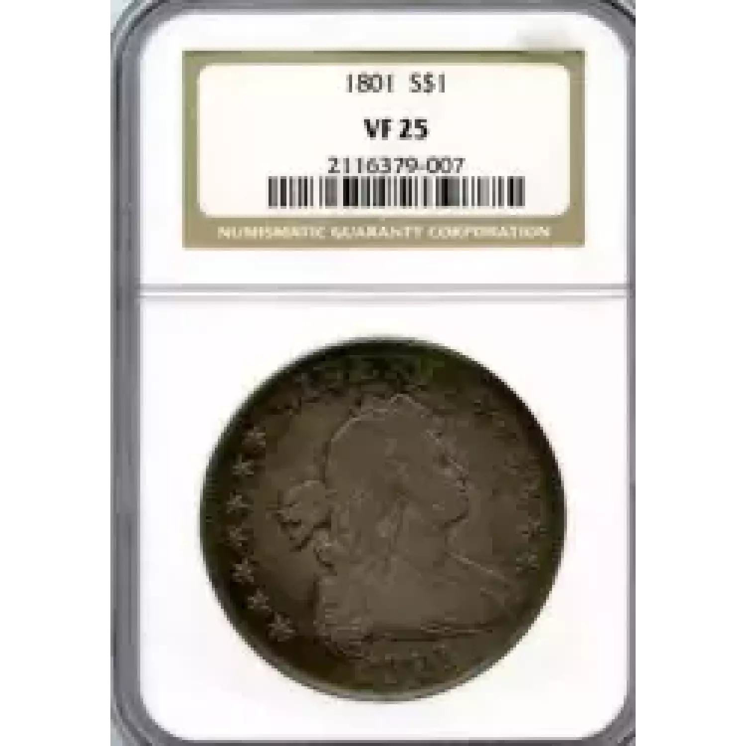 506263 | 1801-VF-25 Silver Dollars Draped Bust NGC VF-25 | NGC | VF-25 | Sold: 05/09/2012 | $2,400 |