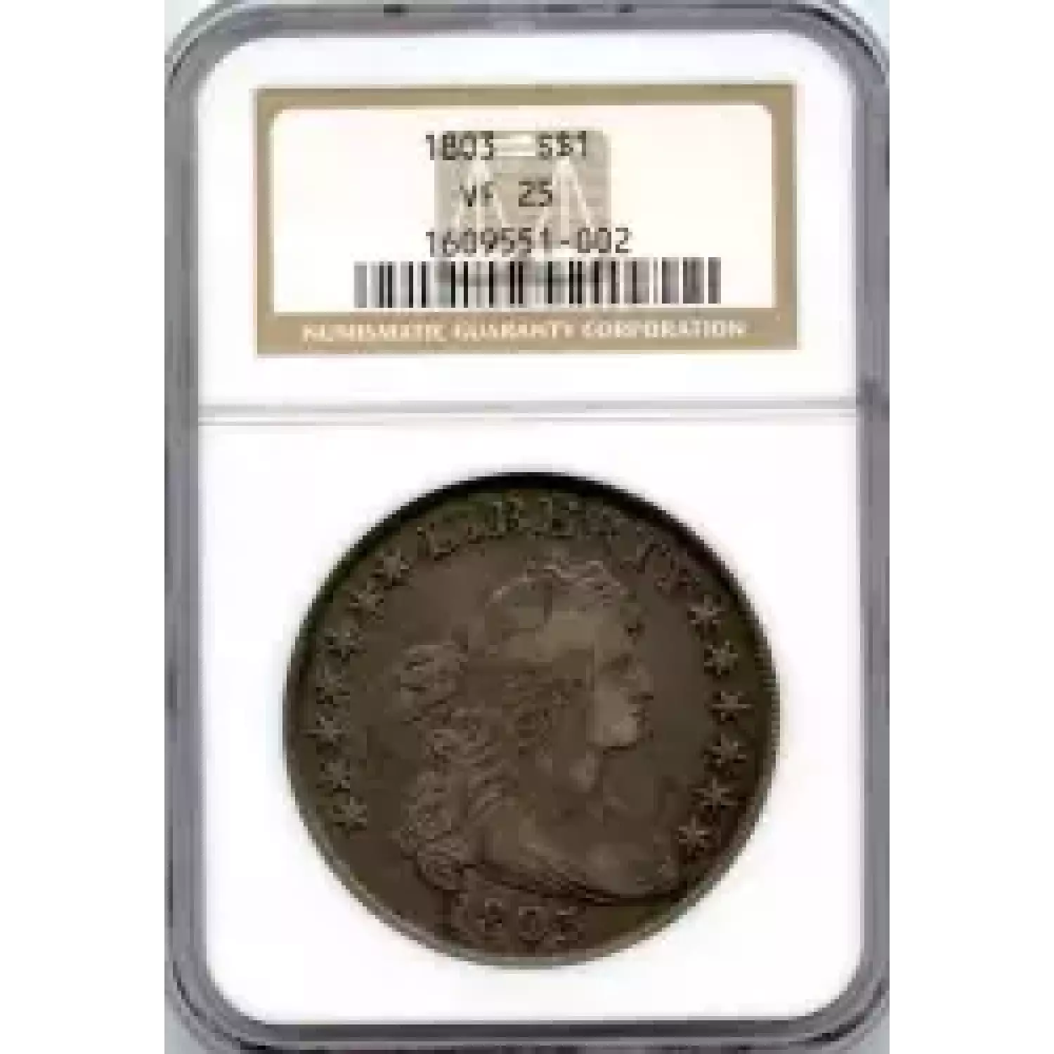 506885 | 1803-VF-25 Silver Dollars Draped Bust NGC VF-25 | NGC | VF-25 | Sold: 17/08/2013 | $2,550 |