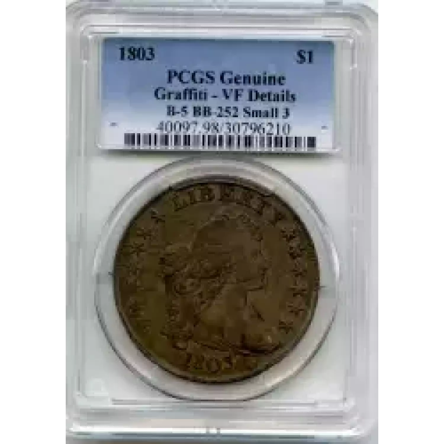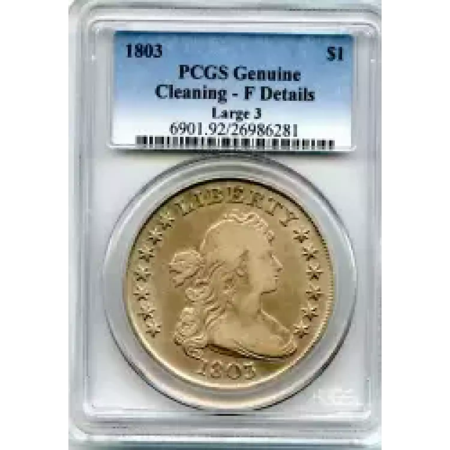 506967 | 1803-Genuine (92 - Cleaning) Silver Dollars Draped Bust PCGS Genuine (92 - Cleaning) | PCGS | Genuine (92 - Cleaning) | Sold: 01/12/2013 | $1,600 |
