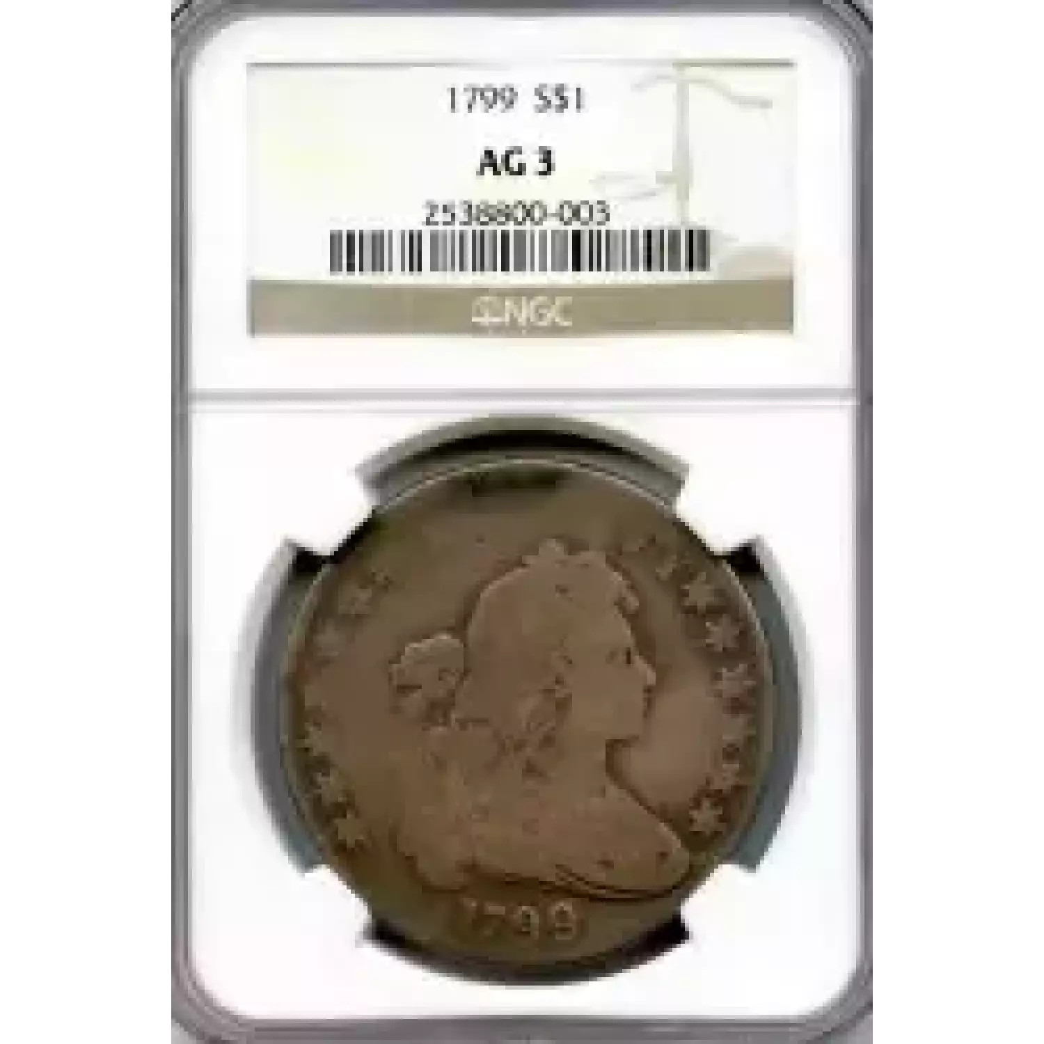 507127 | 1799-AG-3 Silver Dollars Draped Bust NGC AG-3 | NGC | AG-3 | Sold: 12/01/2014 | $675 |