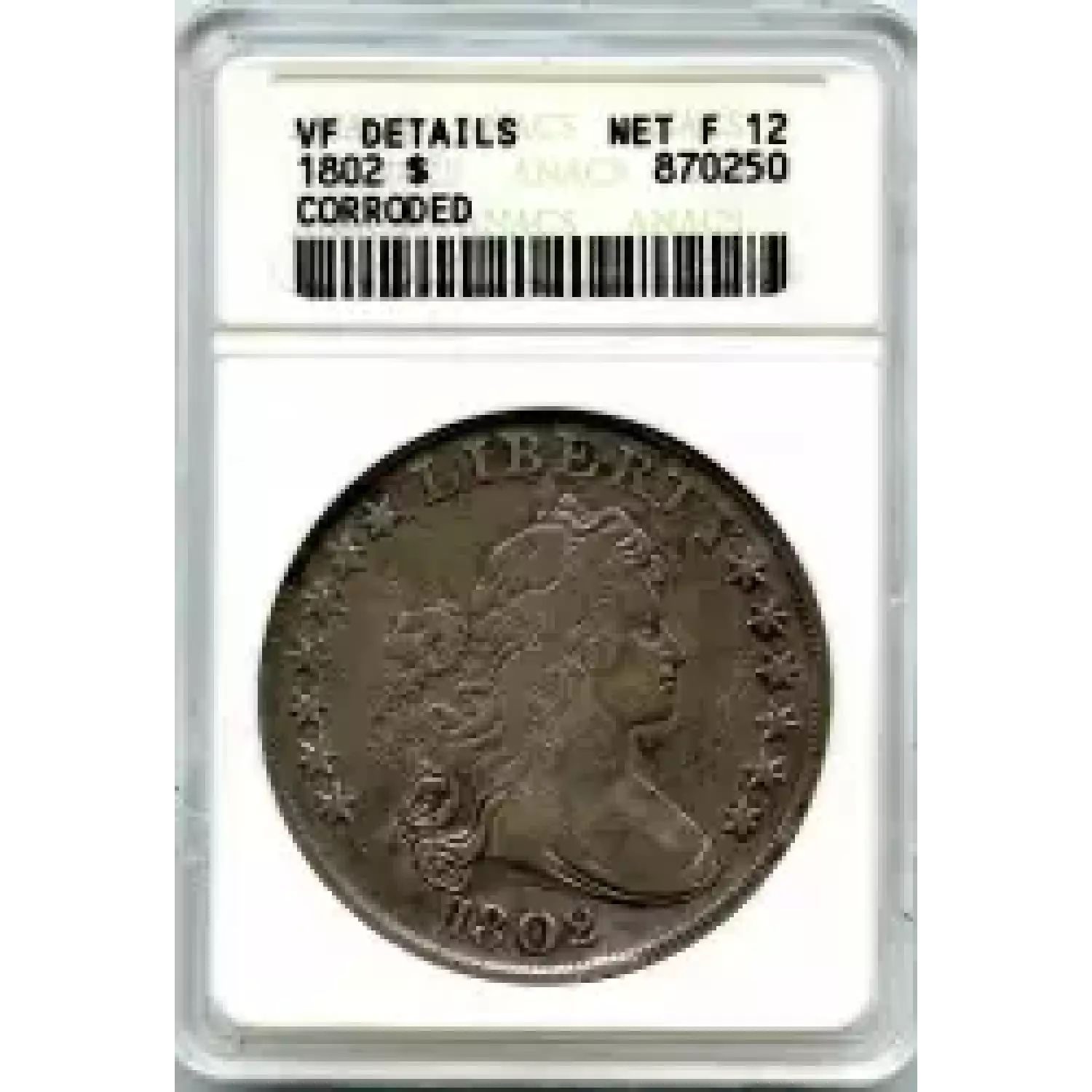 503064 | 1802-VF Details Silver Dollars Draped Bust ANACS VF Details | ANACS | VF Details | Sold: 12/05/2006 | $2,300 |