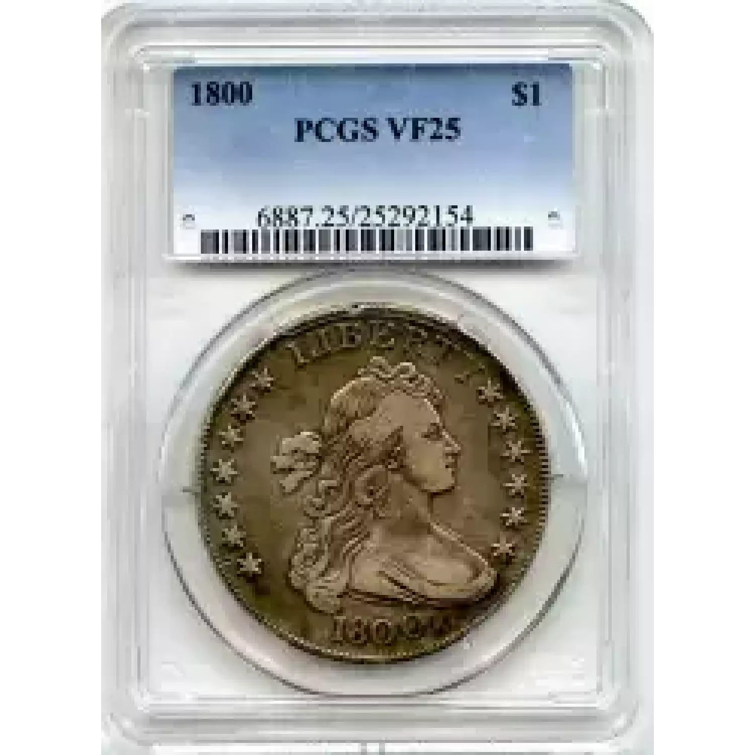 503933 | 1800-VF-25 Silver Dollars Draped Bust PCGS VF-25 | PCGS | VF-25 | Sold: 03/12/2006 | $2,200 |