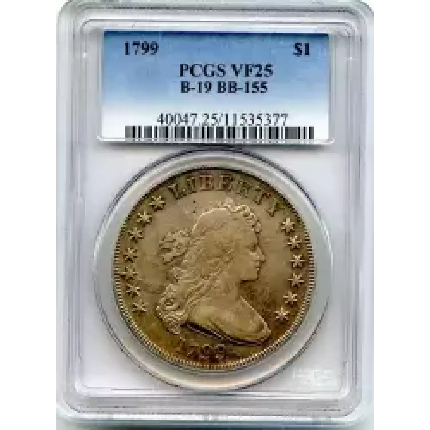 511651 | 1799-VF-25 Silver Dollars Draped Bust PCGS VF-25 | PCGS | VF-25 | Sold: 28/07/2019 | $1,826.01 |