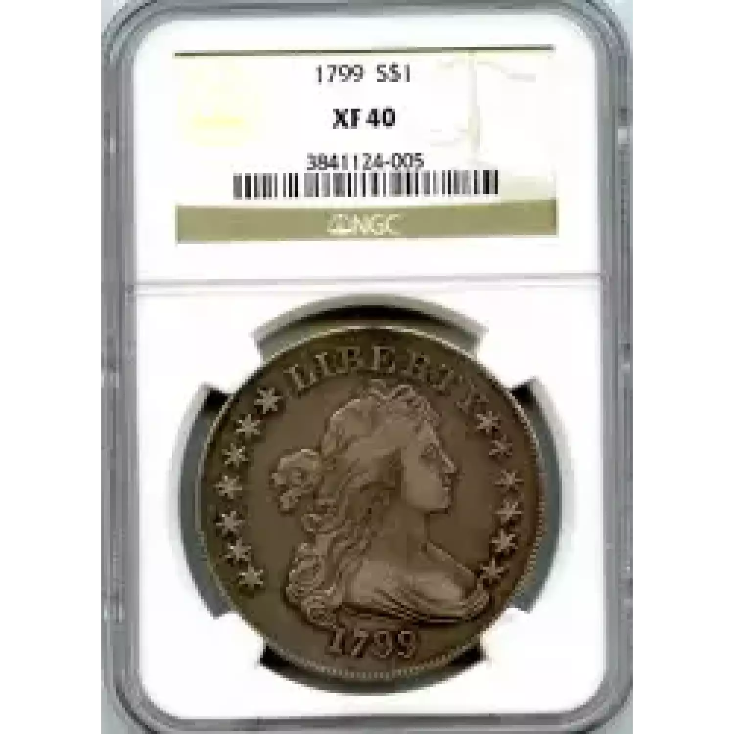 509067 | 1799-XF-40 Silver Dollars Draped Bust NGC XF-40 | NGC | XF-40 | Sold: 09/12/2015 | $4,000 |