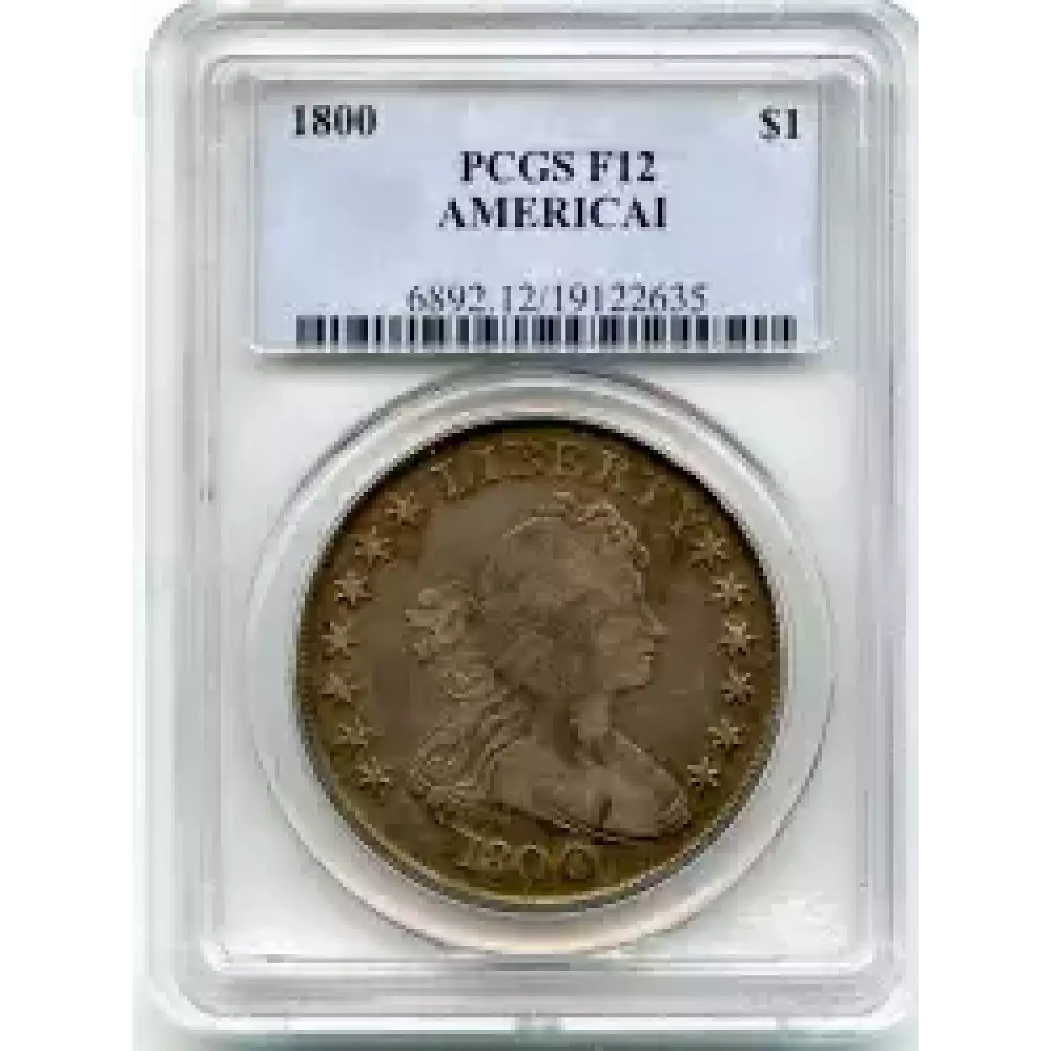 510334 | 1800-F-12 Silver Dollars Draped Bust PCGS F-12 | PCGS | F-12 | Sold: 30/03/2017 | $1,600 |
