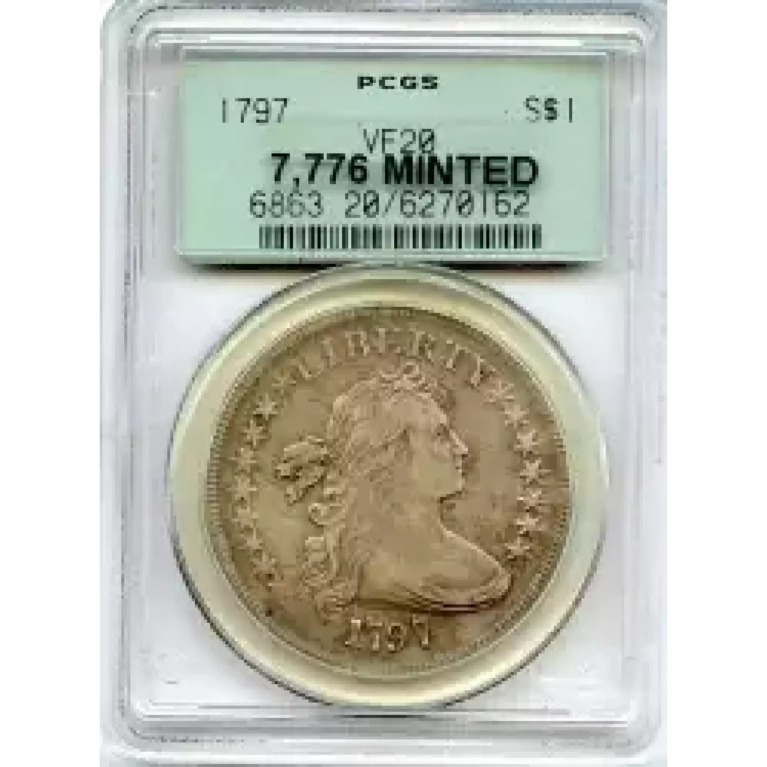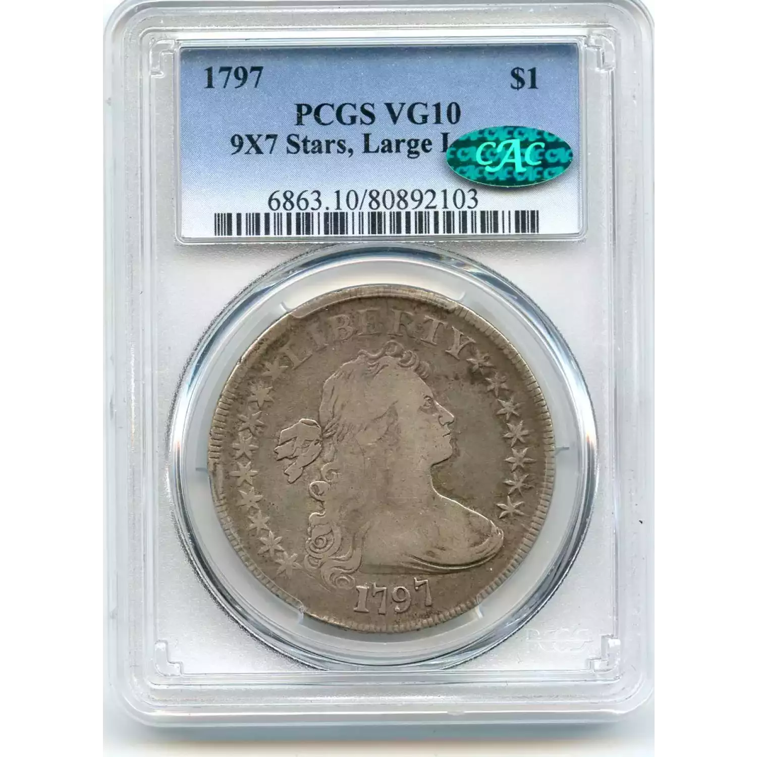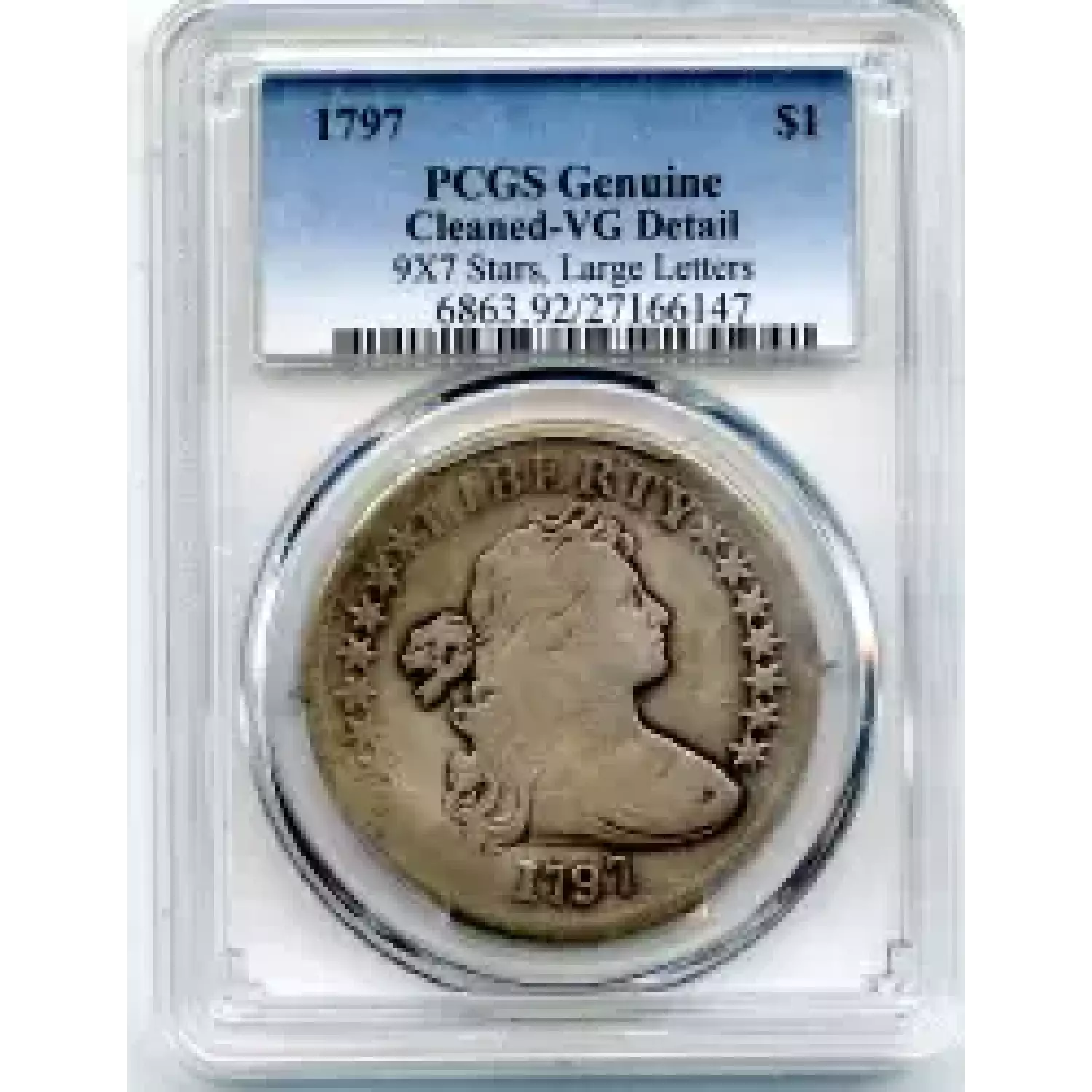 513444 | 1797-VG-10 Silver Dollars Draped Bust PCGS VG-10 CAC | PCGS | VG-10 | Sold: 03/10/2019 | $3,000 |