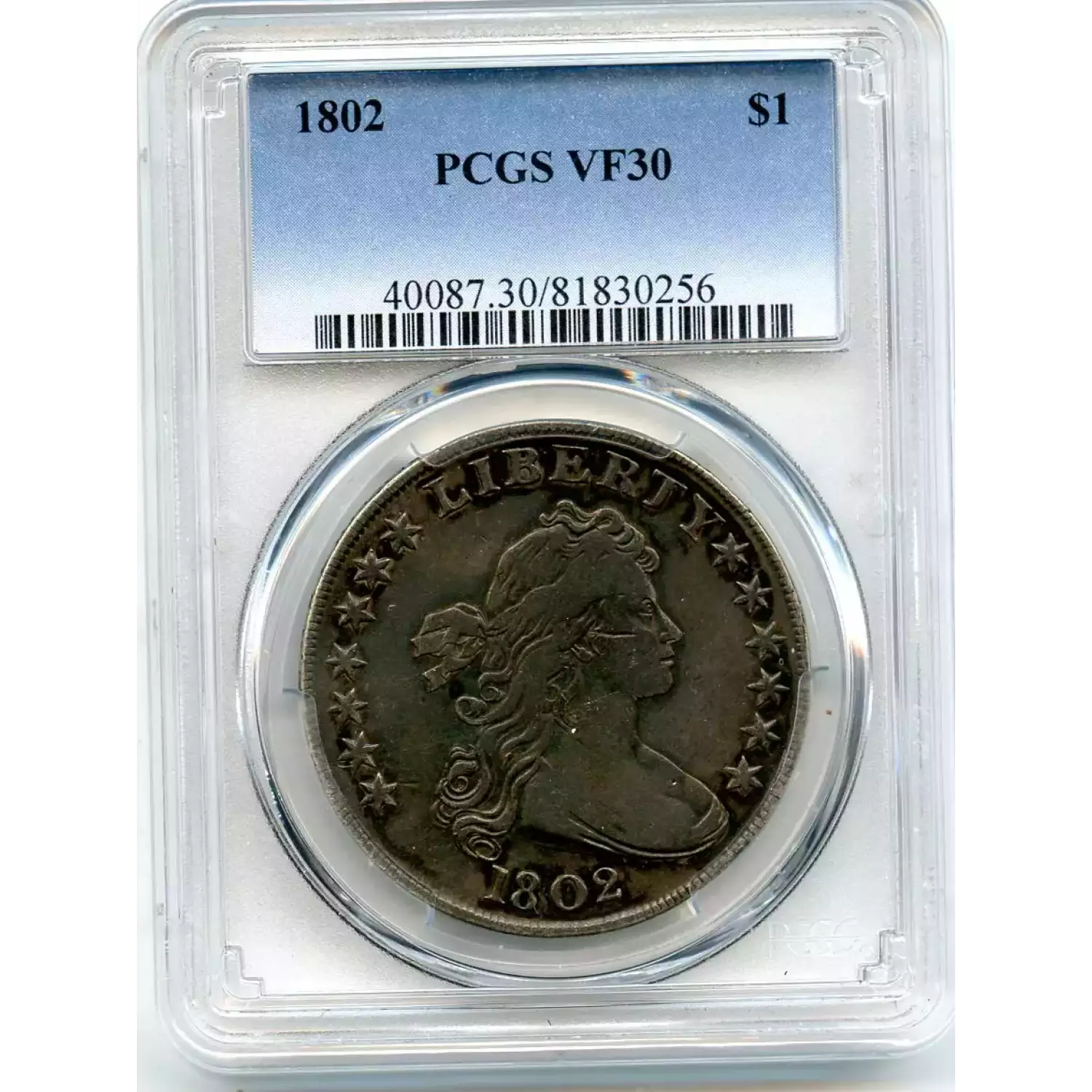 512009 | 1802-VF-30 Silver Dollars Draped Bust PCGS VF-30 | PCGS | VF-30 | Sold: 21/07/2019 | $1,865 |