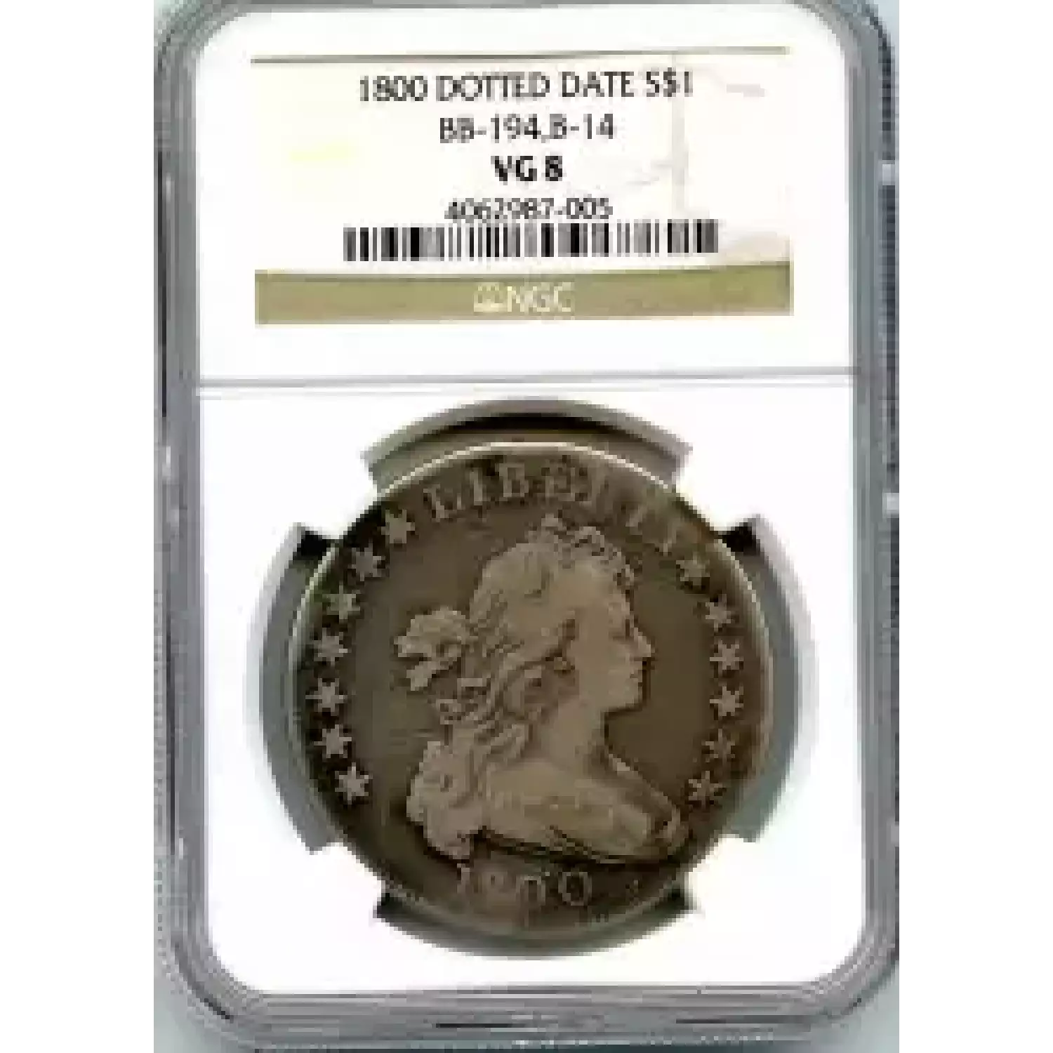 512013 | 1800-VG-8 Silver Dollars Draped Bust NGC VG-8 | NGC | VG-8 | Sold: 12/08/2018 | $960 |