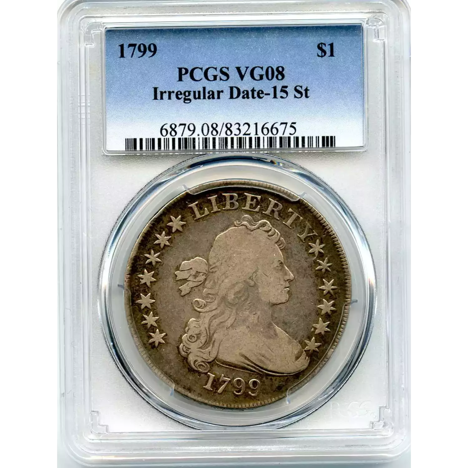 512038 | 1799-VG-8 Silver Dollars Draped Bust PCGS VG-8 | PCGS | VG-8 | Sold: 13/11/2018 | $1,500 |