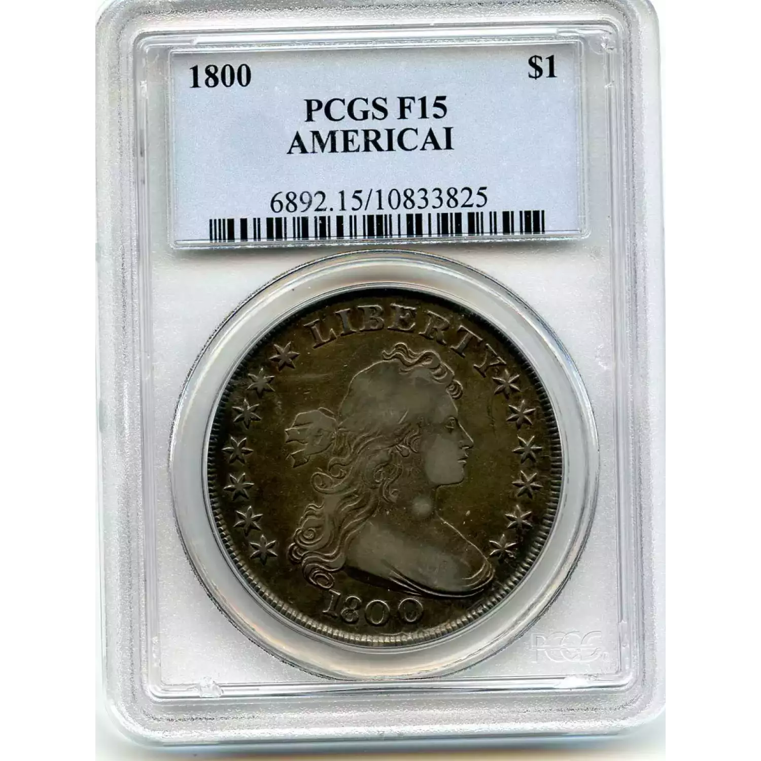 512128 | 1800-F-15 Silver Dollars Draped Bust PCGS F-15 | PCGS | F-15 | Sold: 26/04/2019 | $1,670 |