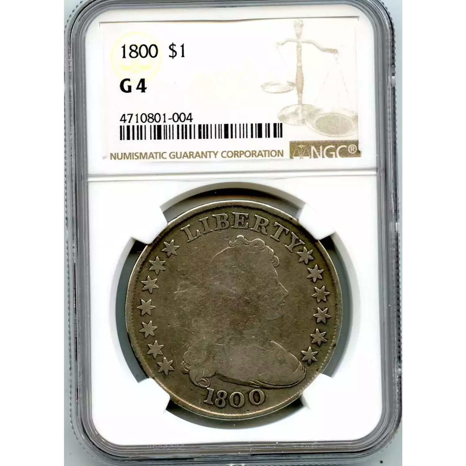 512423 | 1800-G-4 Silver Dollars Draped Bust NGC G-4 | NGC | G-4 | Sold: 20/03/2019 | $825 |