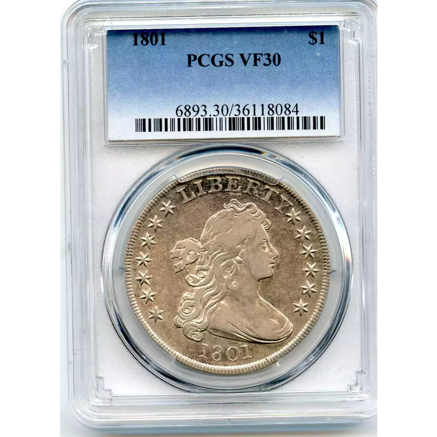 512428 | 1801-VF-30 Silver Dollars Draped Bust PCGS VF-30 | PCGS | VF-30 | Sold: 25/02/2019 | $2,825 |