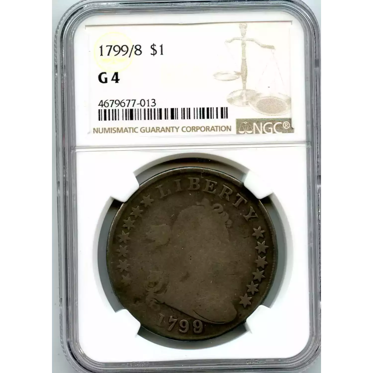 512491 | 1799/8-G-4 Silver Dollars Draped Bust NGC G-4 | NGC | G-4 | Sold: 20/03/2019 | $825 |
