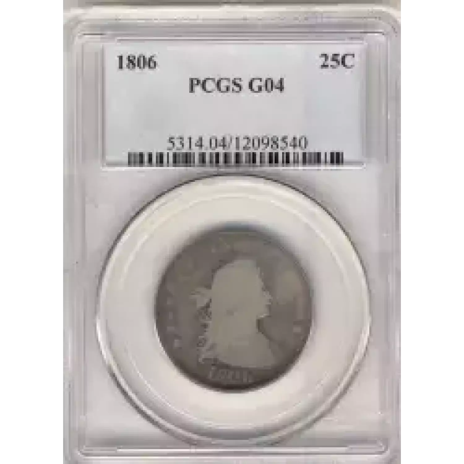 504512 | 1806-G-4 Quarter Dollars Draped Bust PCGS G-4 | PCGS | G-4 | Sold: 06/11/2008 | $500 |
