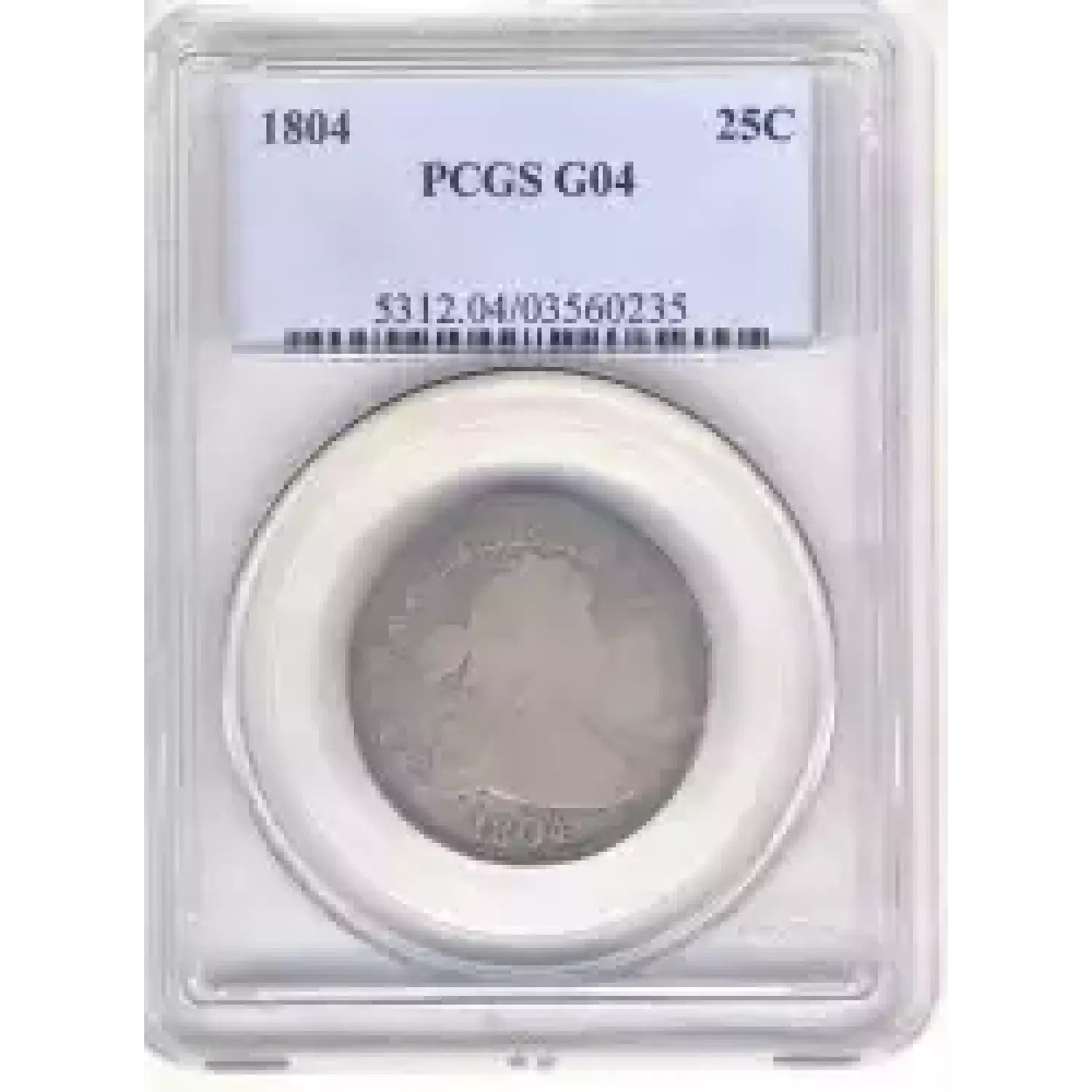 505723 | 1804-G-4 Quarter Dollars Draped Bust PCGS G-4 | PCGS | G-4 | Sold: 18/07/2011 | $3,200 |
