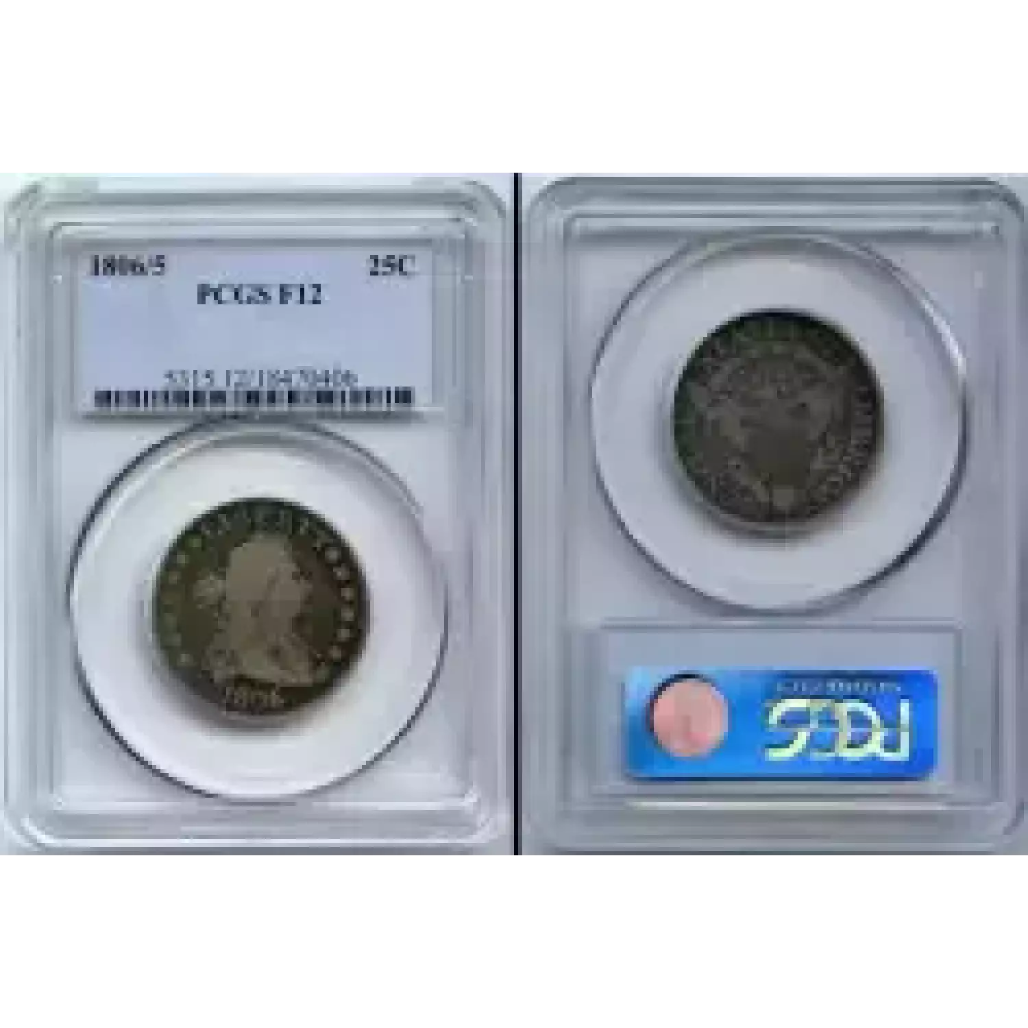 505839 | 1806/5-F-12 Quarter Dollars Draped Bust PCGS F-12 | PCGS | F-12 | Sold: 15/10/2011 | $1,000 |