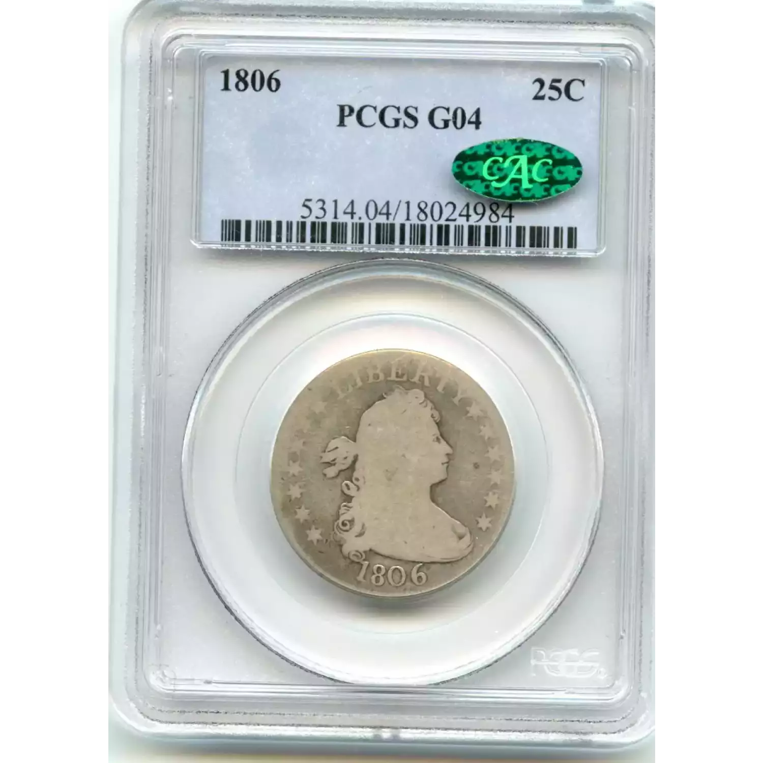 507268 | 1806-G-6 Quarter Dollars Draped Bust PCGS G-6 CAC | PCGS | G-6 | Sold: 15/05/2014 | $450 |
