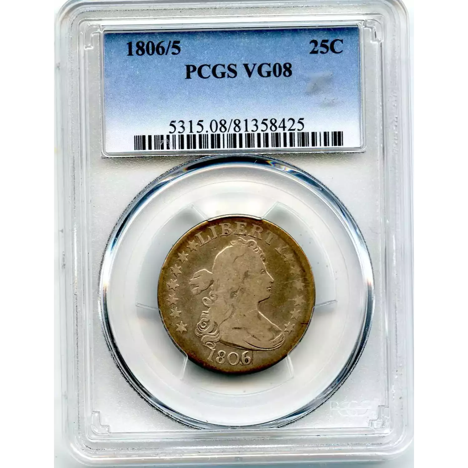 511931 | 1806/5-VG-8 Quarter Dollars Draped Bust PCGS VG-8 | PCGS | VG-8 | Sold: 10/12/2018 | $675 |