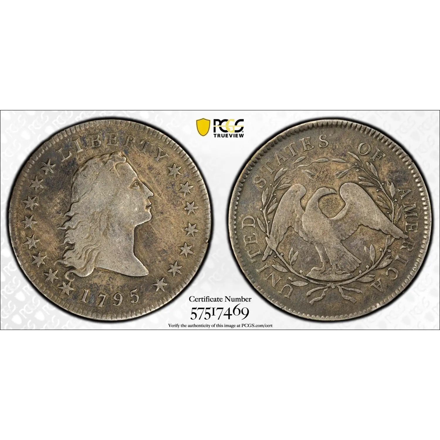 501234 | 1795 Silver Dollars Flowing Hair PCGS F-15 2 Leaves | PCGS | F-15 | Sold: 10/08/2022 | $6,750 |