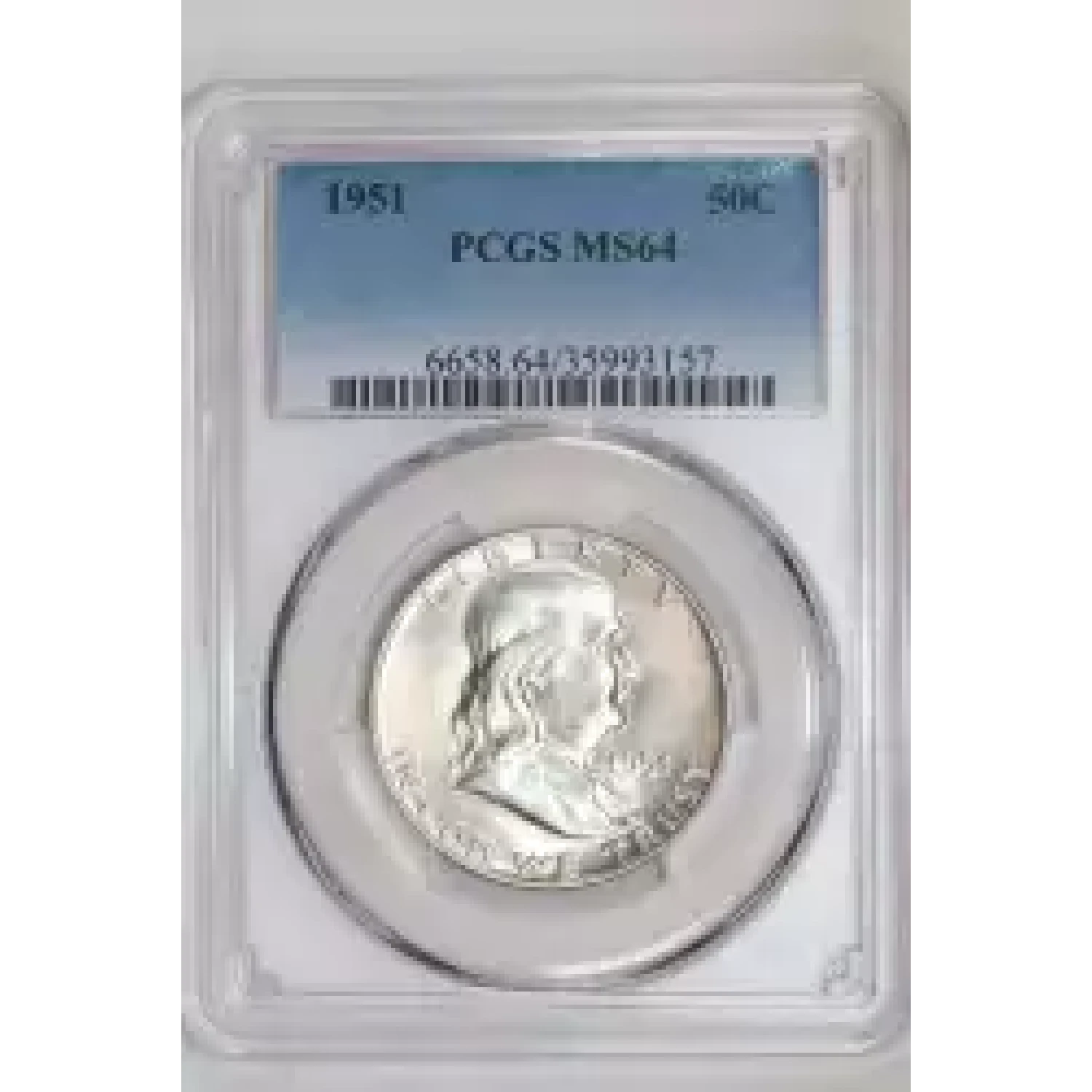 519348 | 1951 Half Dollars Franklin PCGS MS-64 | PCGS | MS-64 | Sold: 08/09/2023 | $40 |