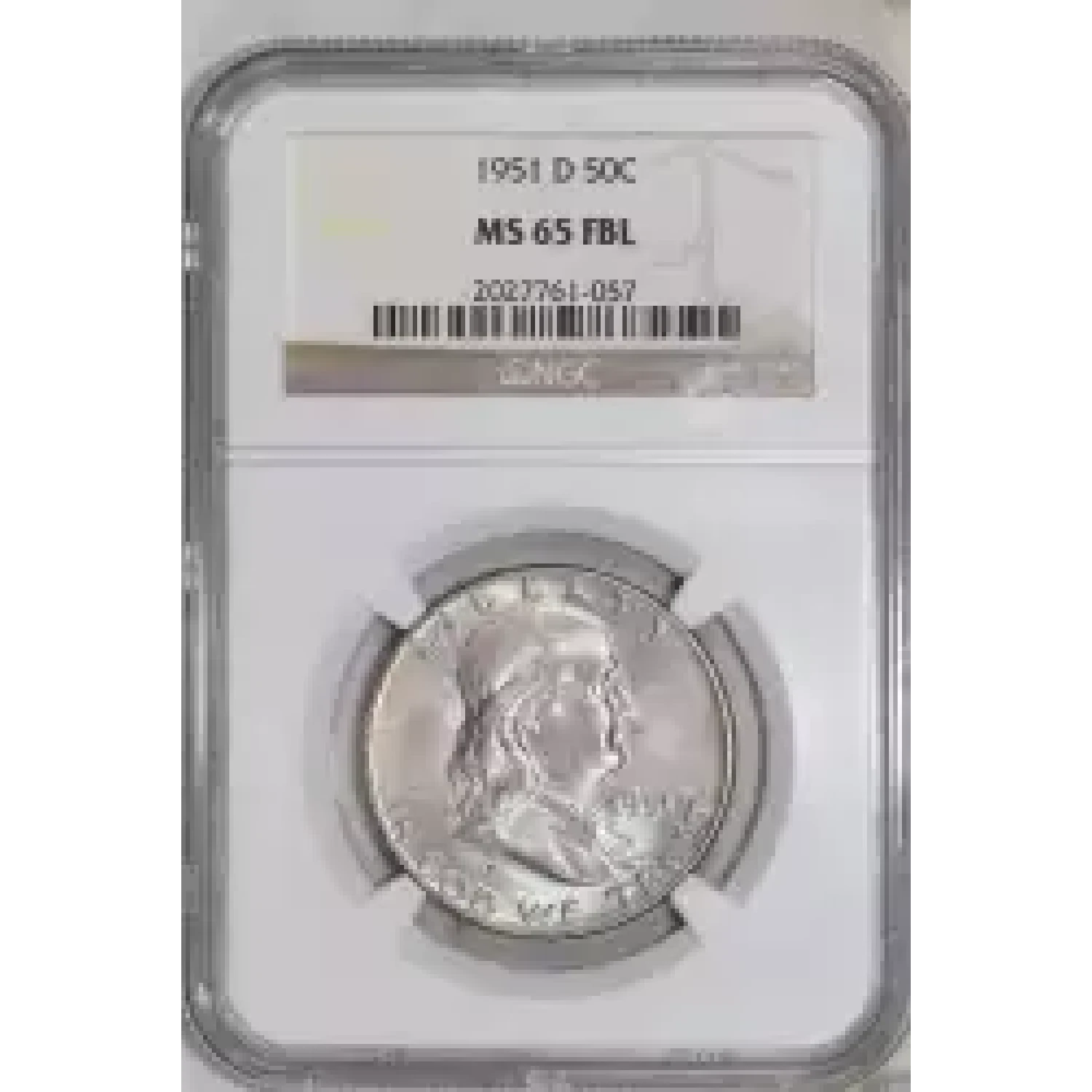 516320 | 1951-D Half Dollars Franklin NGC MS-65 FBL | NGC | MS-65 | Sold: 03/01/2023 | $160 |