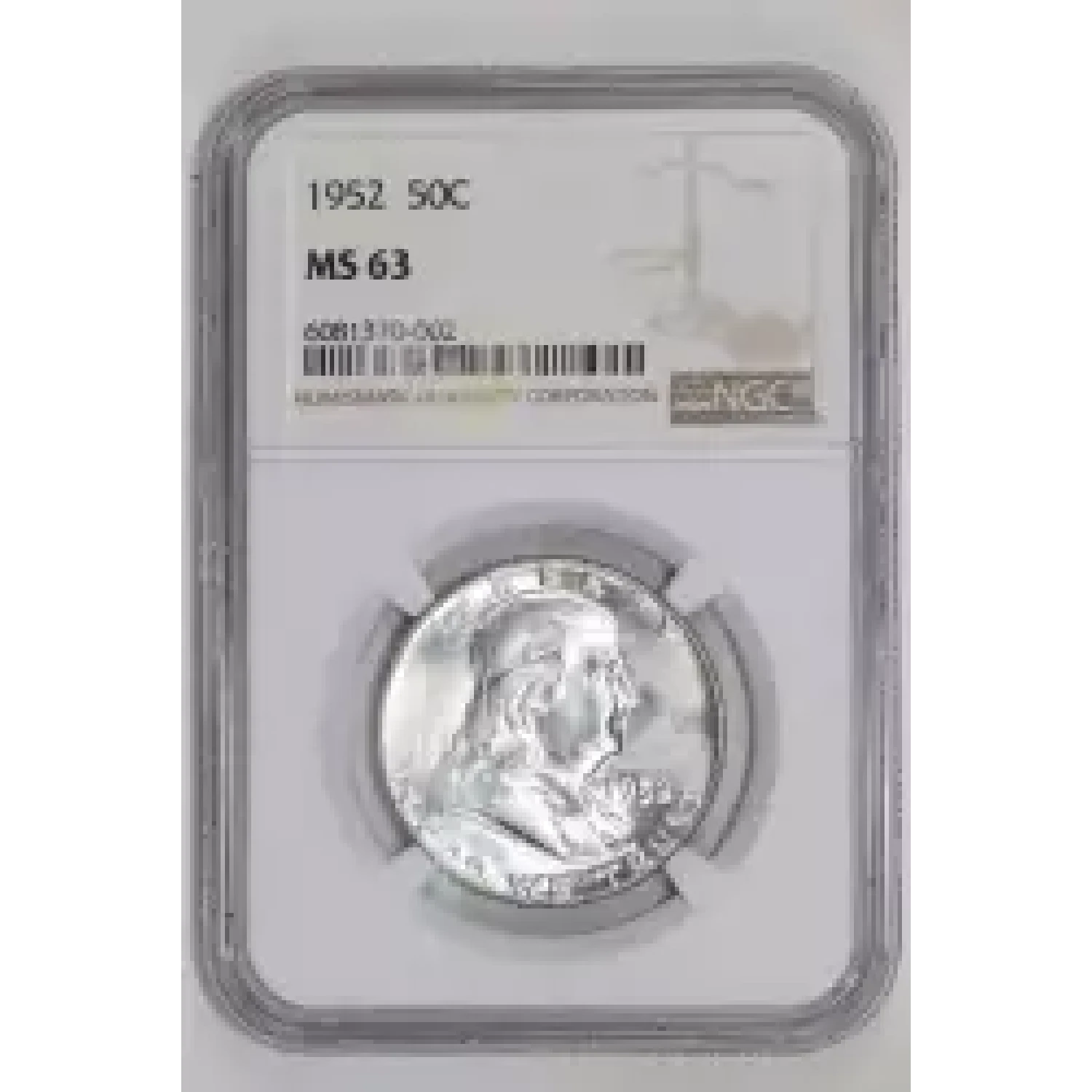 523341 | 1952 Half Dollars Franklin NGC MS-63 | NGC | MS-63 | Sold: 02/08/2024 | $30 |