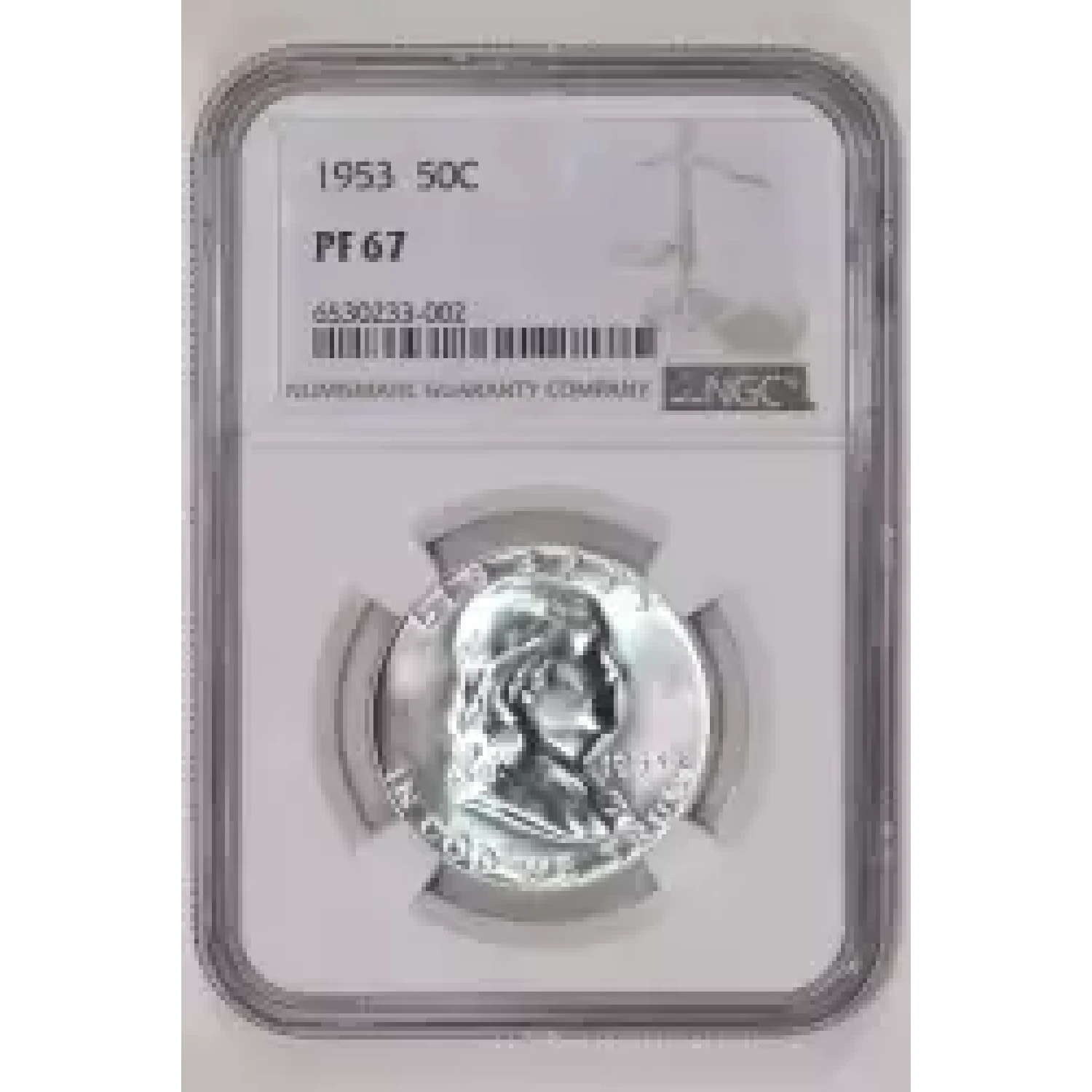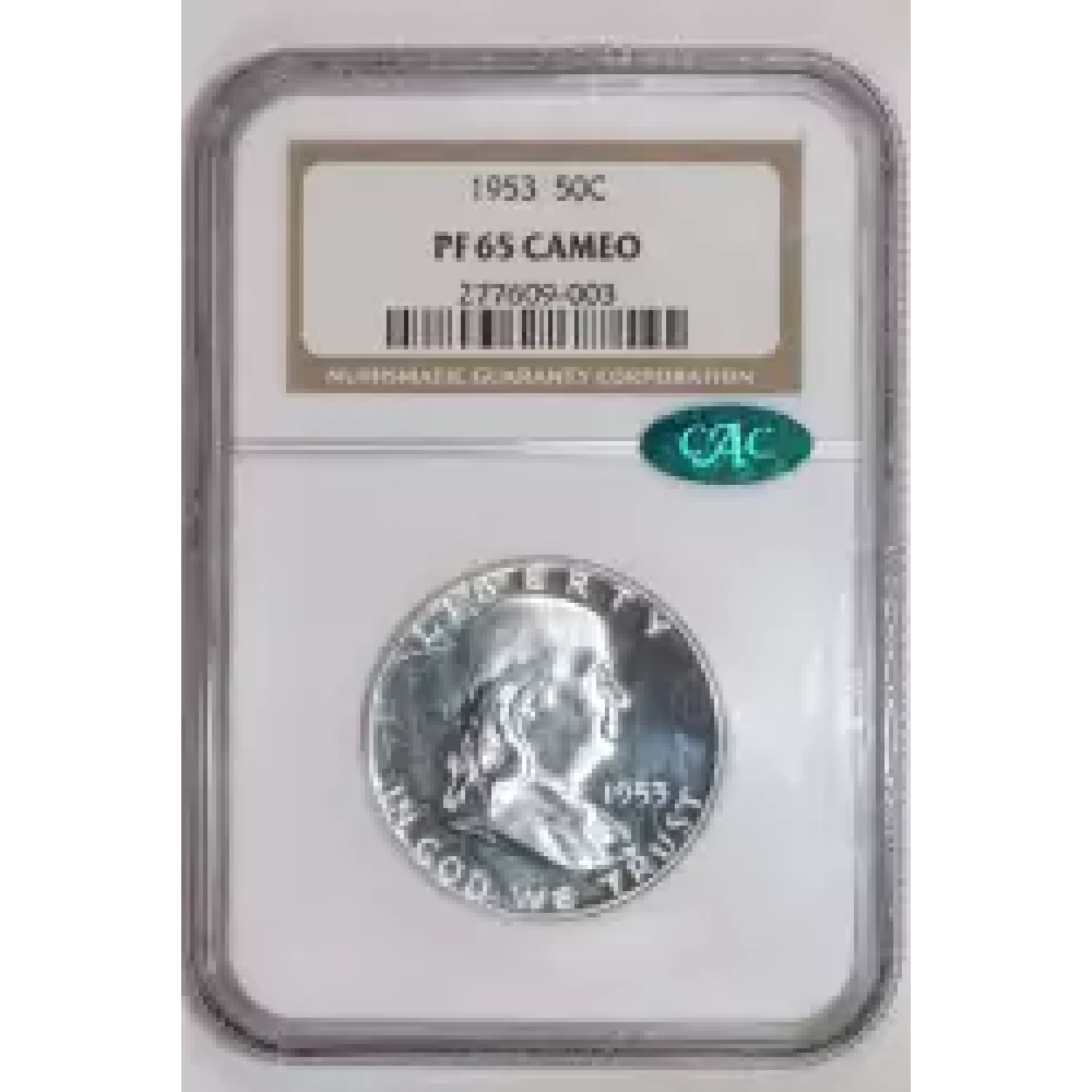 523144 | 1953 Half Dollars Franklin NGC PF-65 CAMEO CAC | NGC | PF-65 | Sold: 02/10/2024 | $350 |