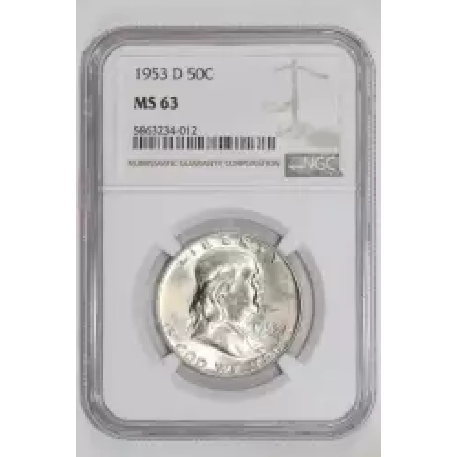 523342 | 1953-D Half Dollars Franklin NGC MS-63 | NGC | MS-63 | Sold: 02/08/2024 | $36 |