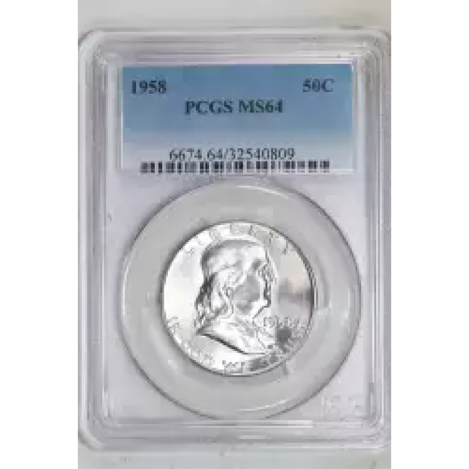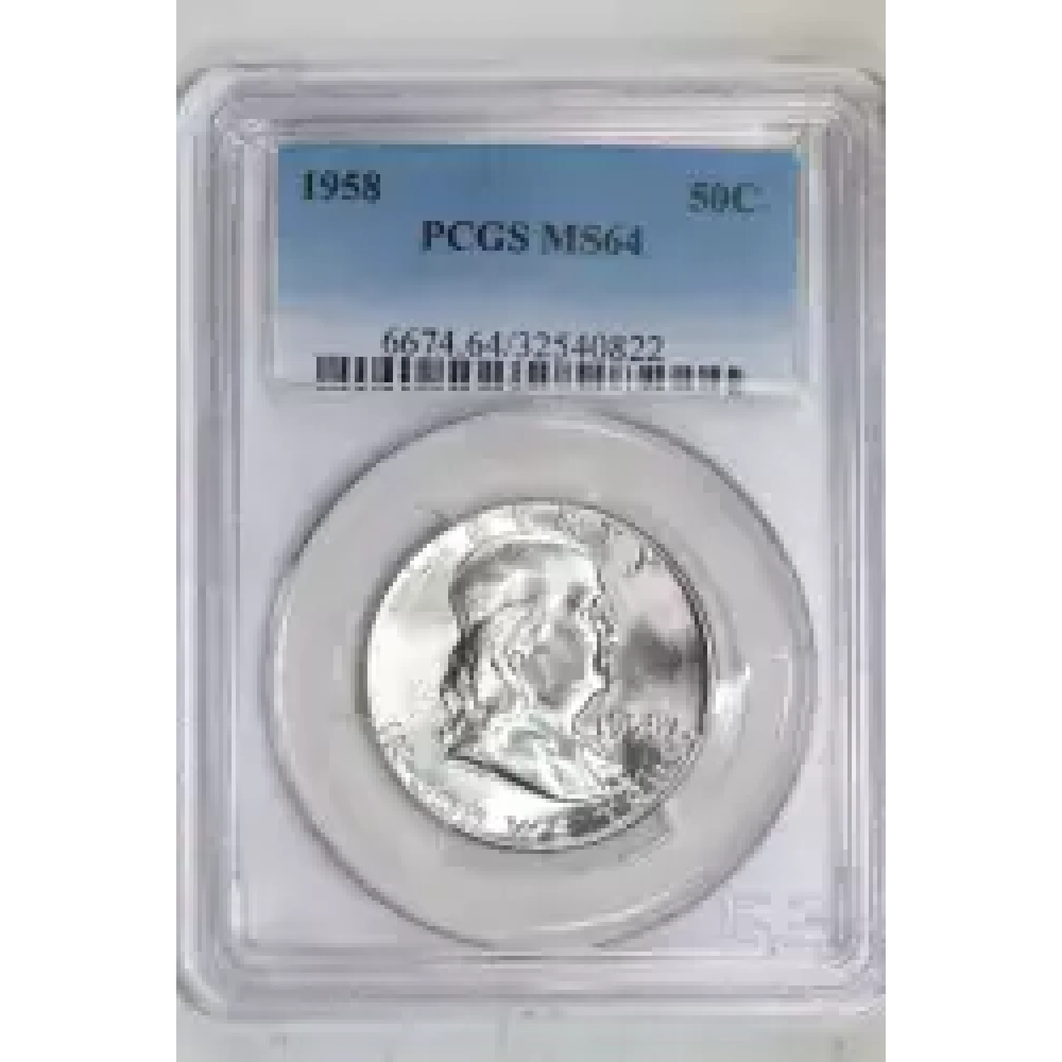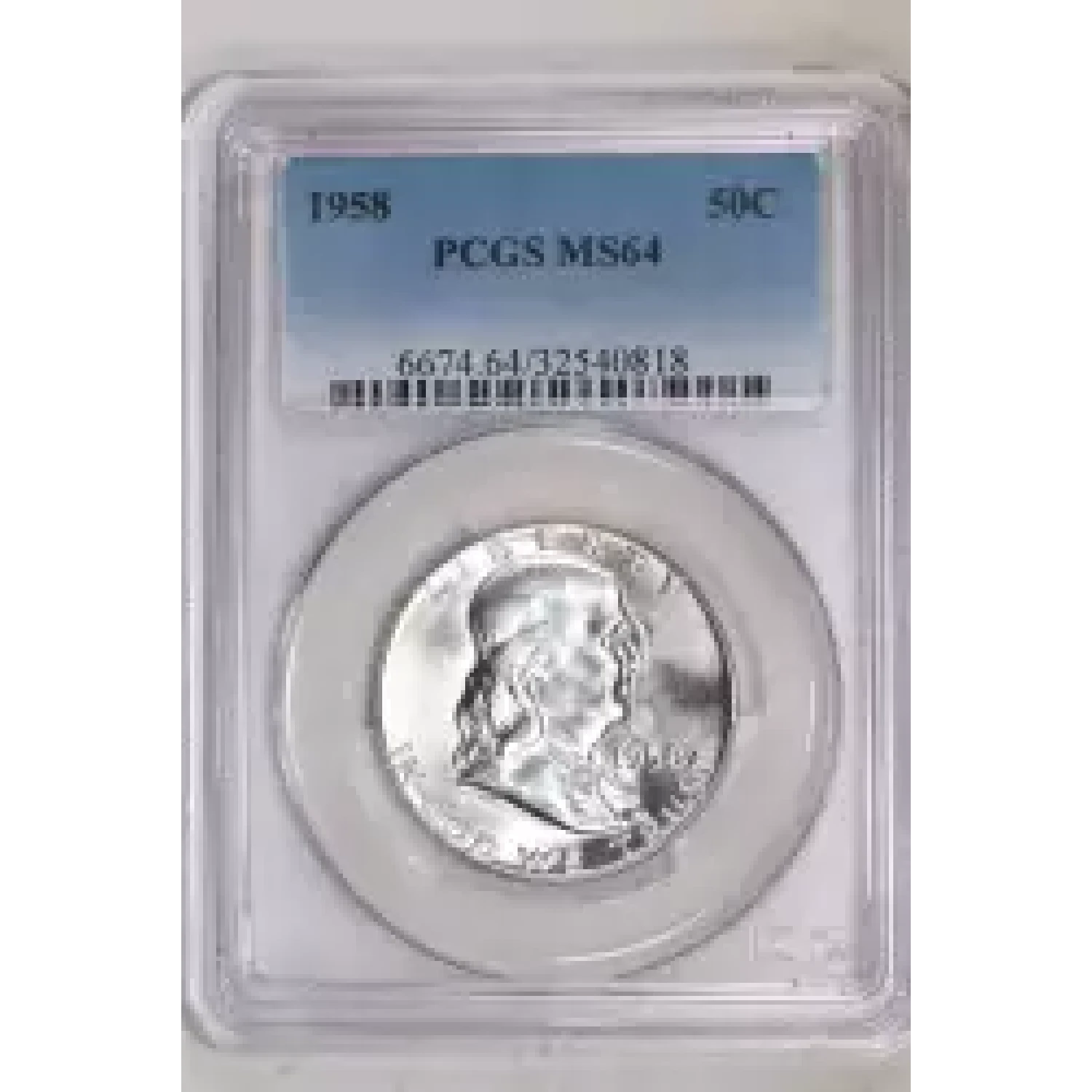 520131 | 1958 Half Dollars Franklin PCGS MS-64 | PCGS | MS-64 | Sold: 24/10/2023 | $35 |