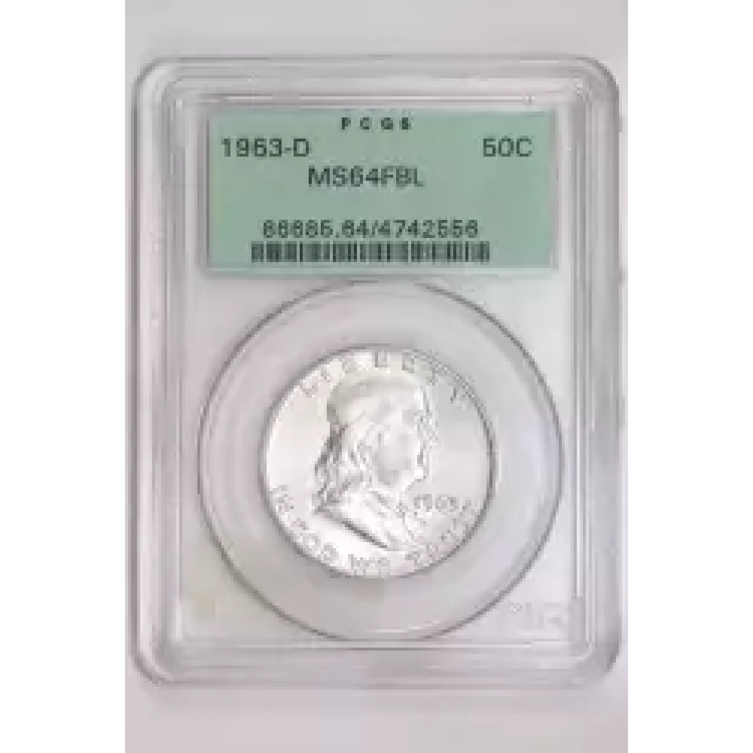 522481 | 1963-D Half Dollars Franklin PCGS MS-64 FBL | PCGS | MS-64 | Sold: 02/10/2024 | $55 |