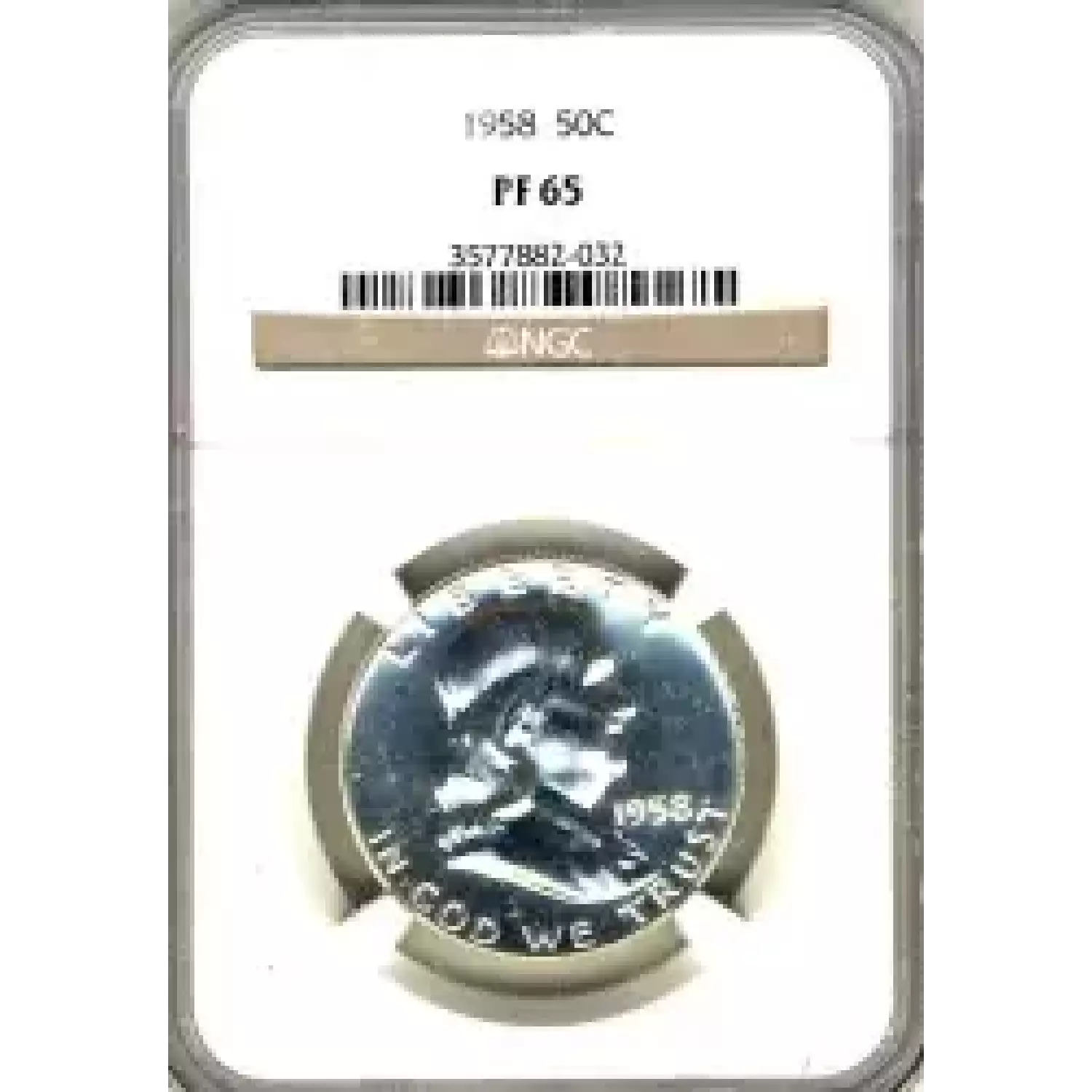 506071 | 1958-PF-65 Half Dollars Franklin NGC PF-65 | NGC | PF-65 | Sold: 05/08/2012 | $21 |