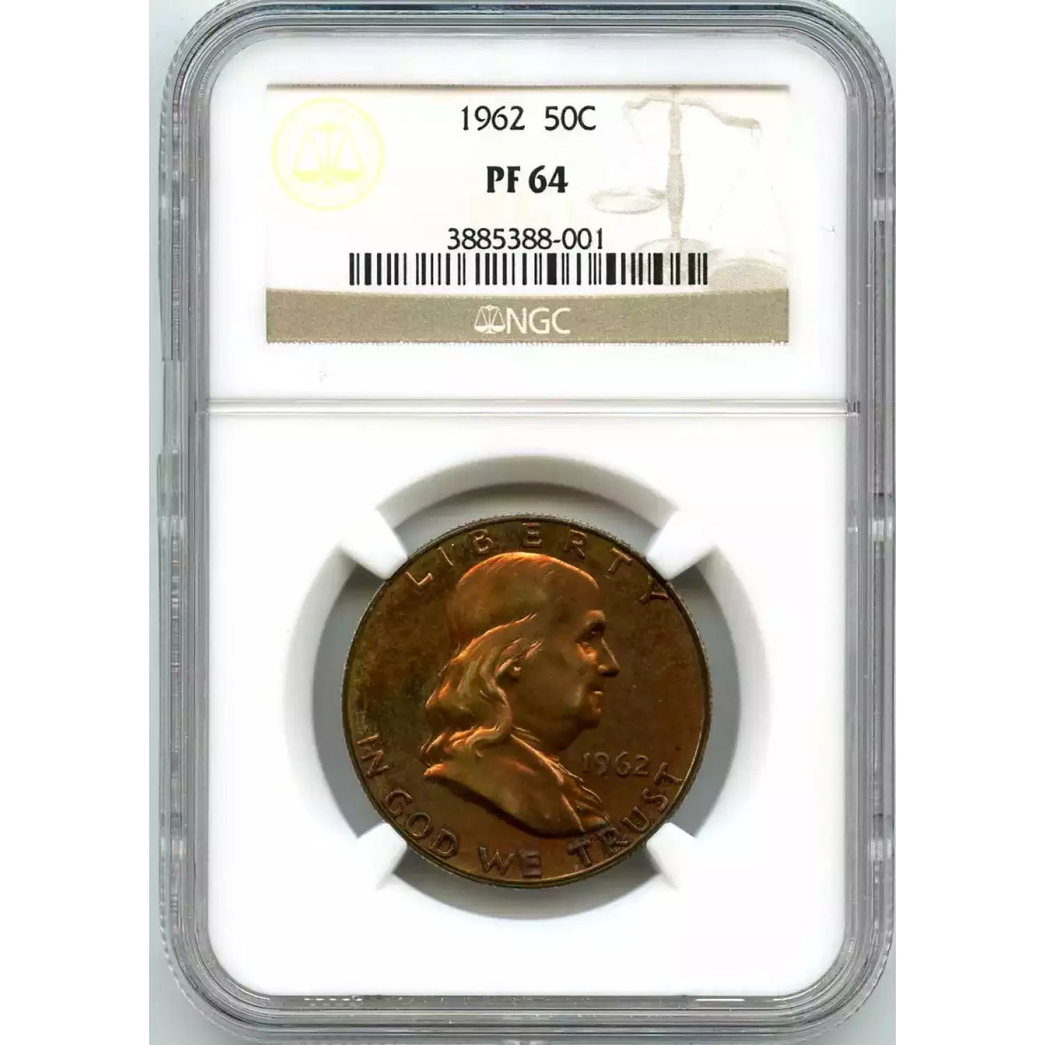 508707 | 1962-PF-64 Half Dollars Franklin NGC PF-64 | NGC | PF-64 | Sold: 07/06/2015 | $140 |