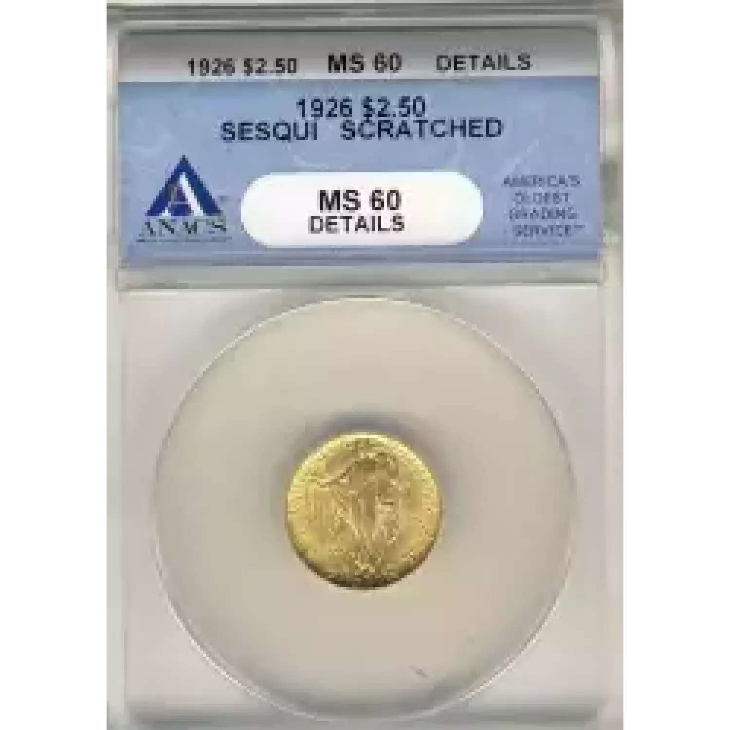 504323 | 1926-UNC Details Gold $2.5 Sesquicentennial ANACS UNC Details Scratched | ANACS | UNC Details | Sold: 11/05/2008 | $350 |