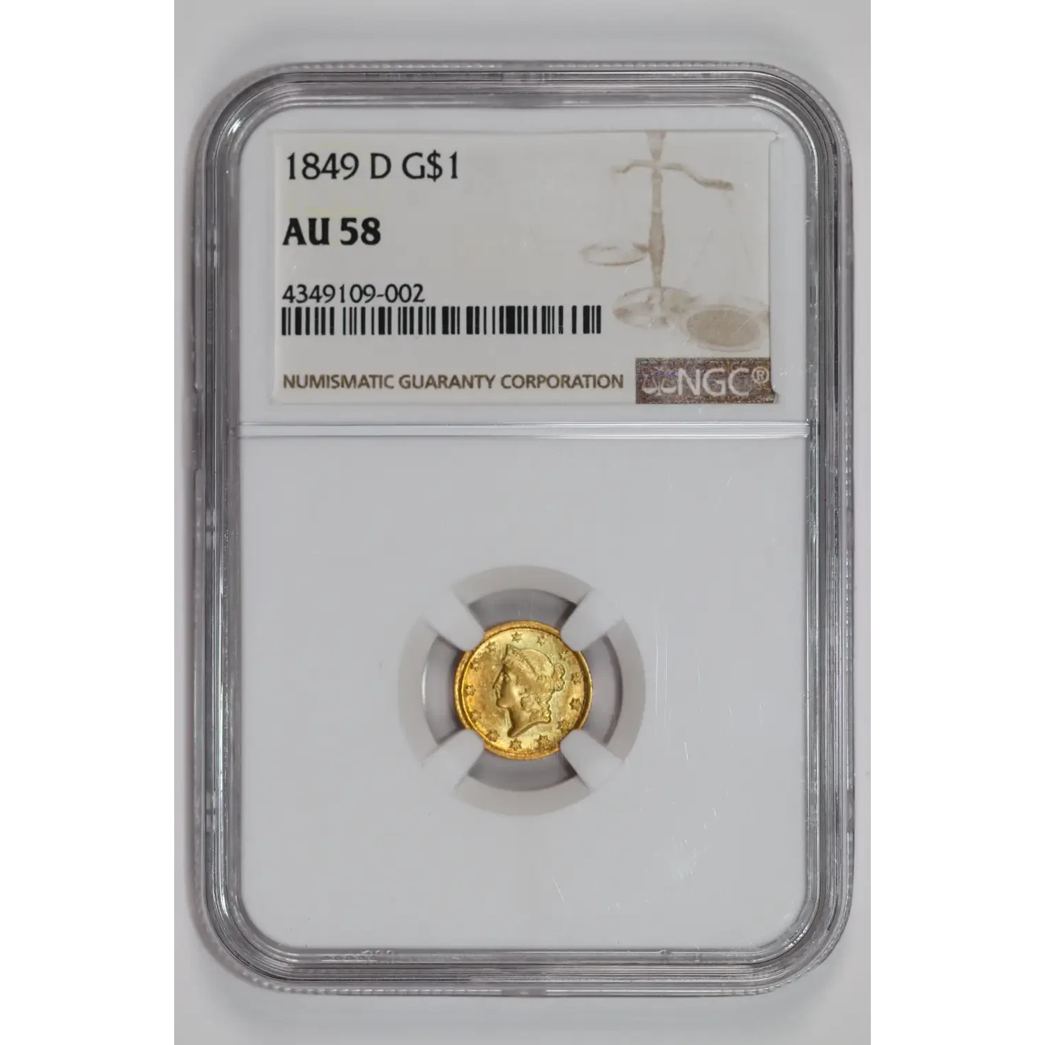 535699 | 1849-D Gold Dollars Liberty Head NGC AU-58 | NGC | AU-58 | Sold: 07/11/2025 | $5,900 |