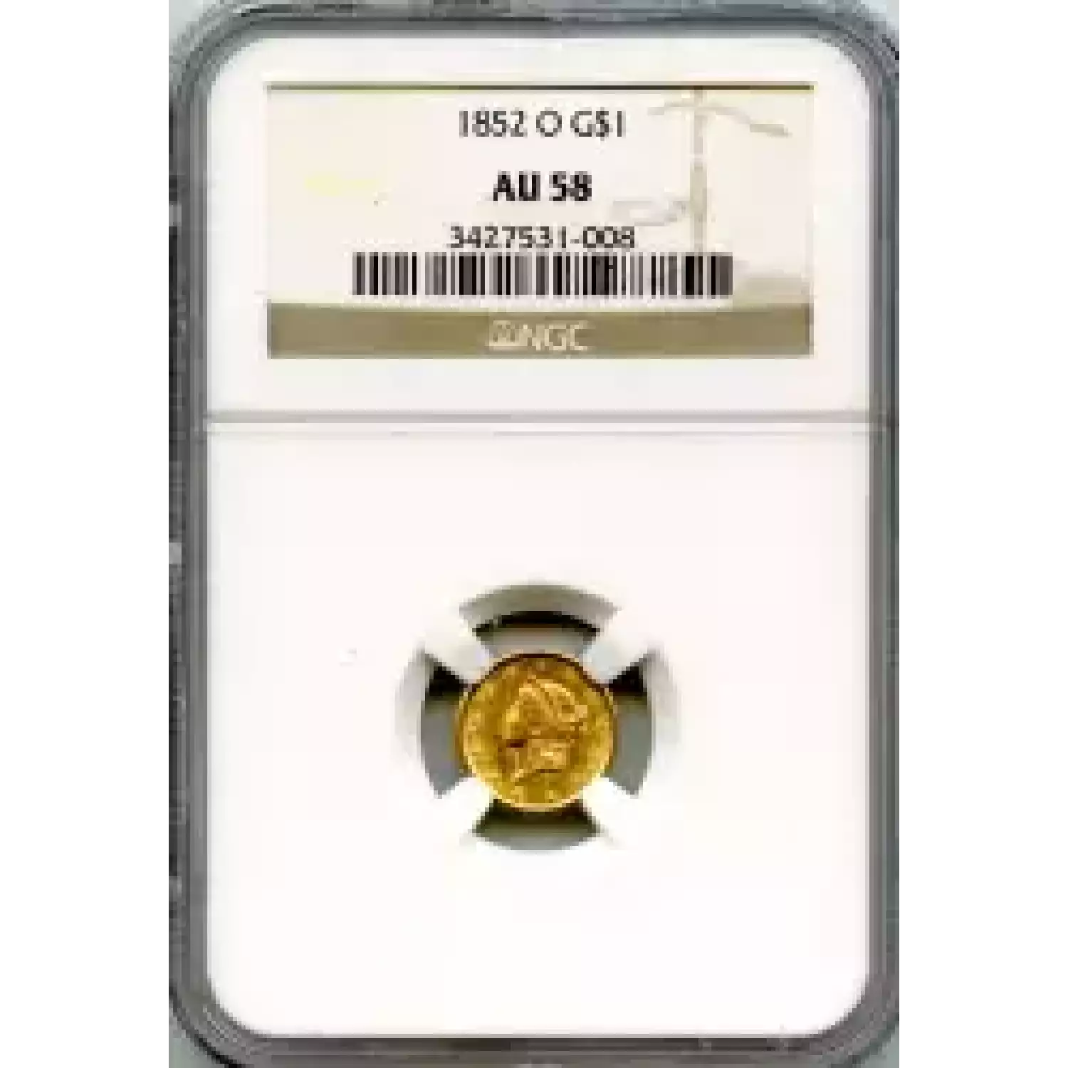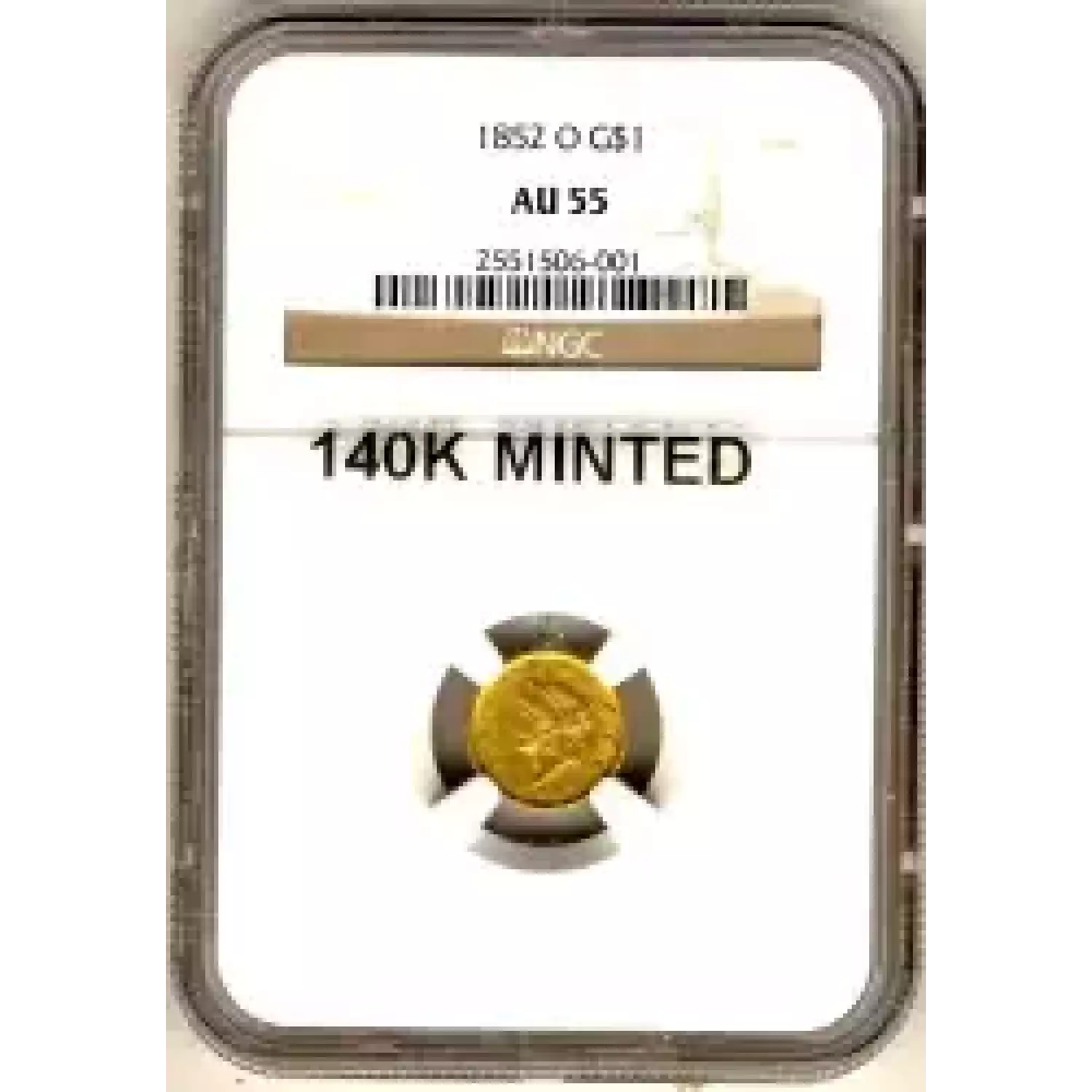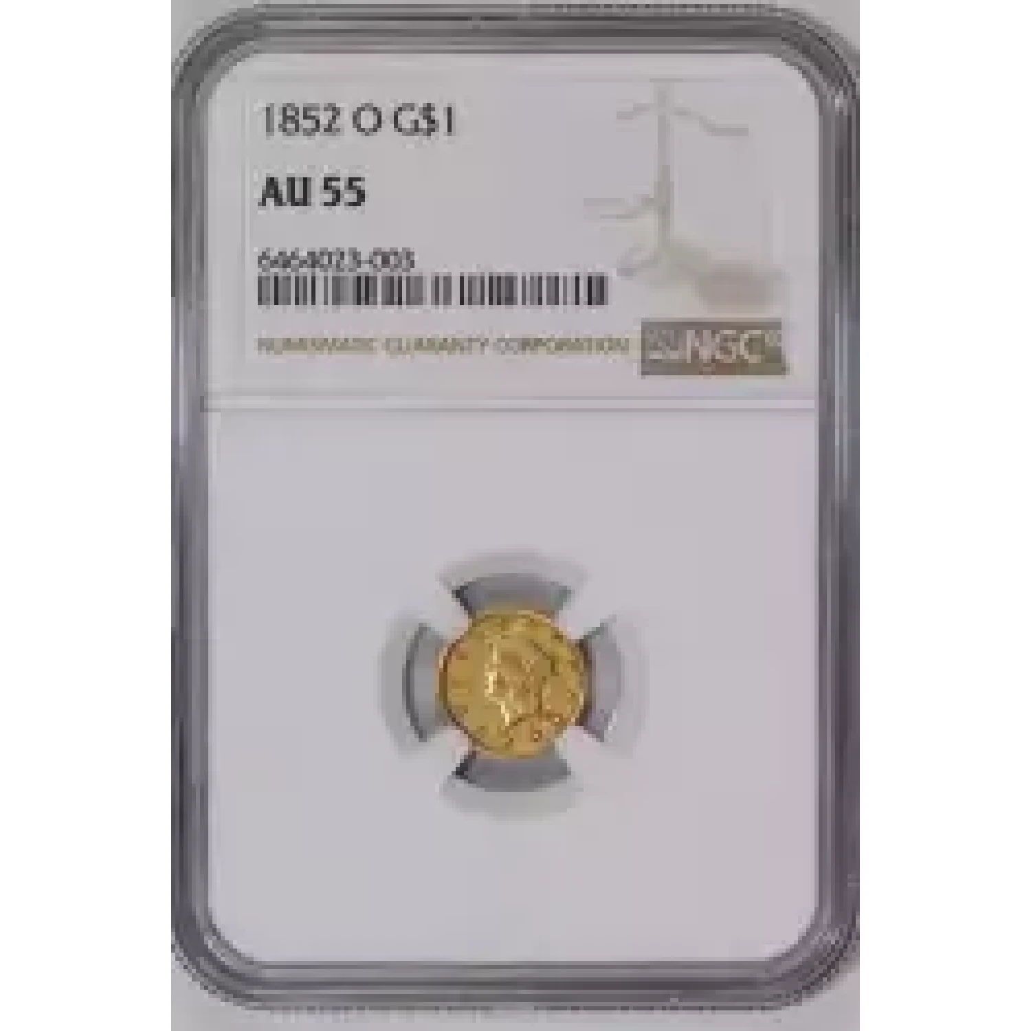 502589 | 1852-O Gold Dollars Liberty Head NGC AU-55 | NGC | AU-55 | Sold: 18/07/2022 | $650 |