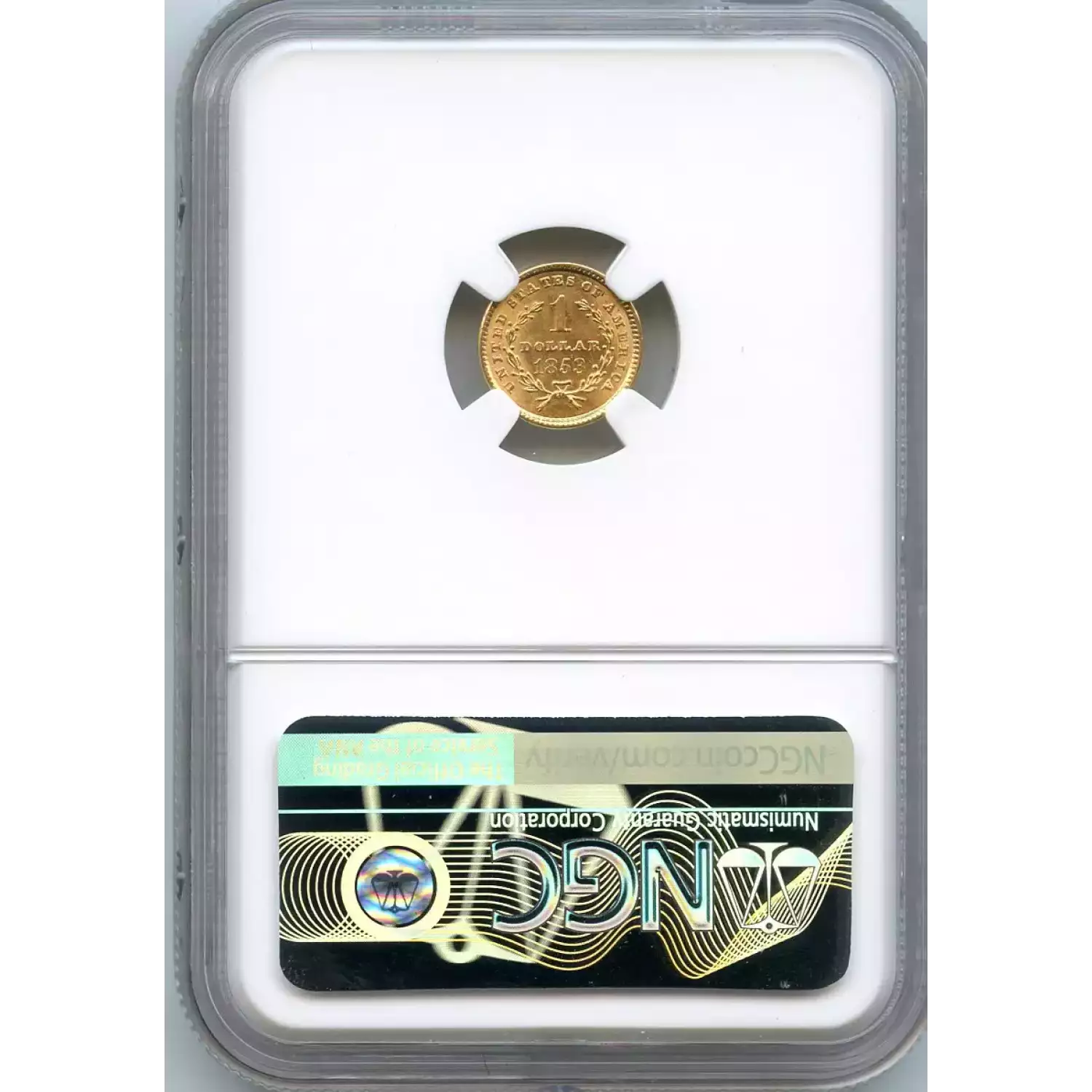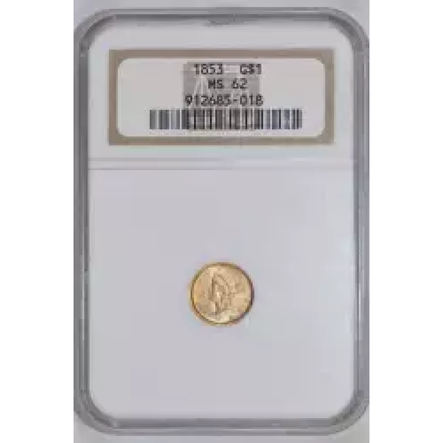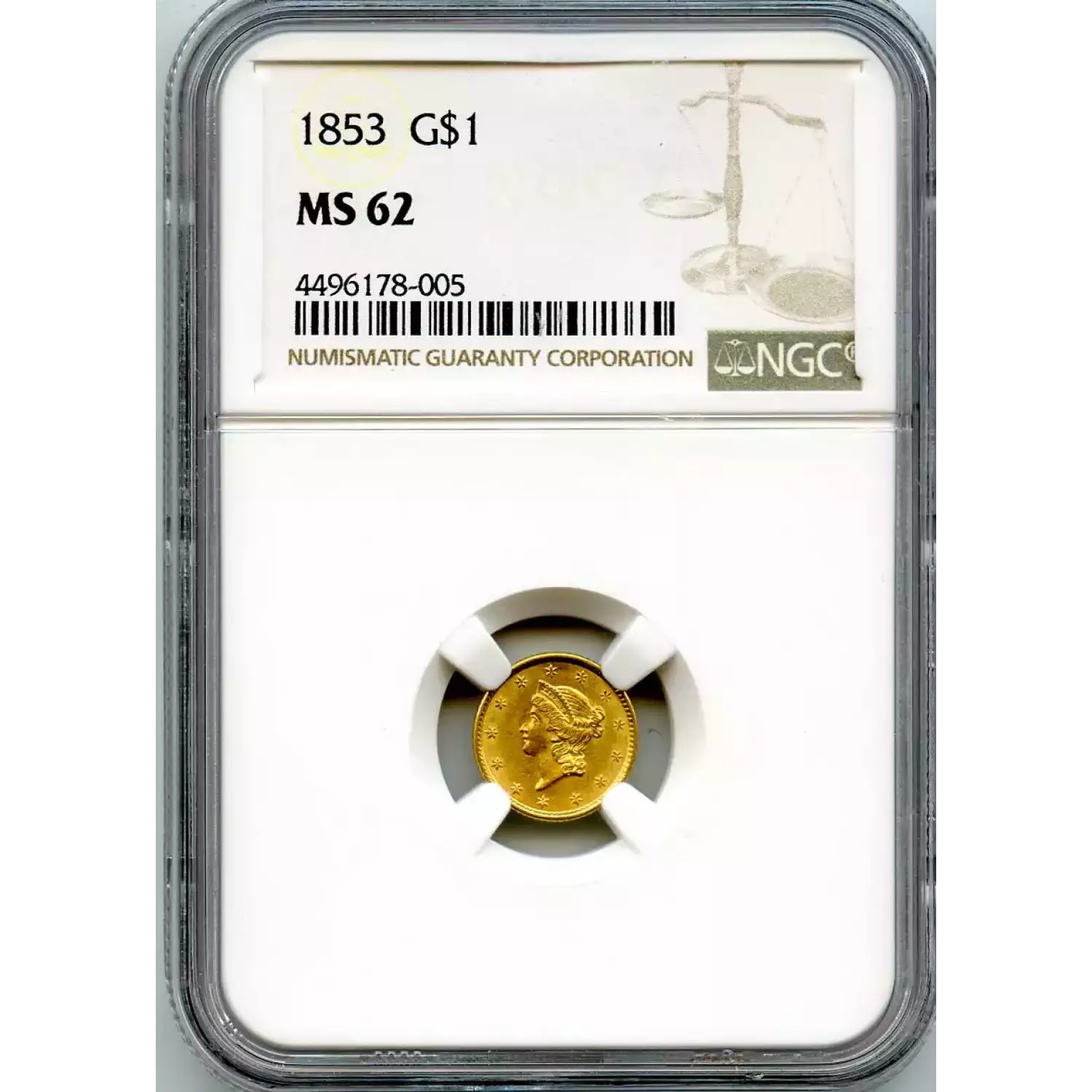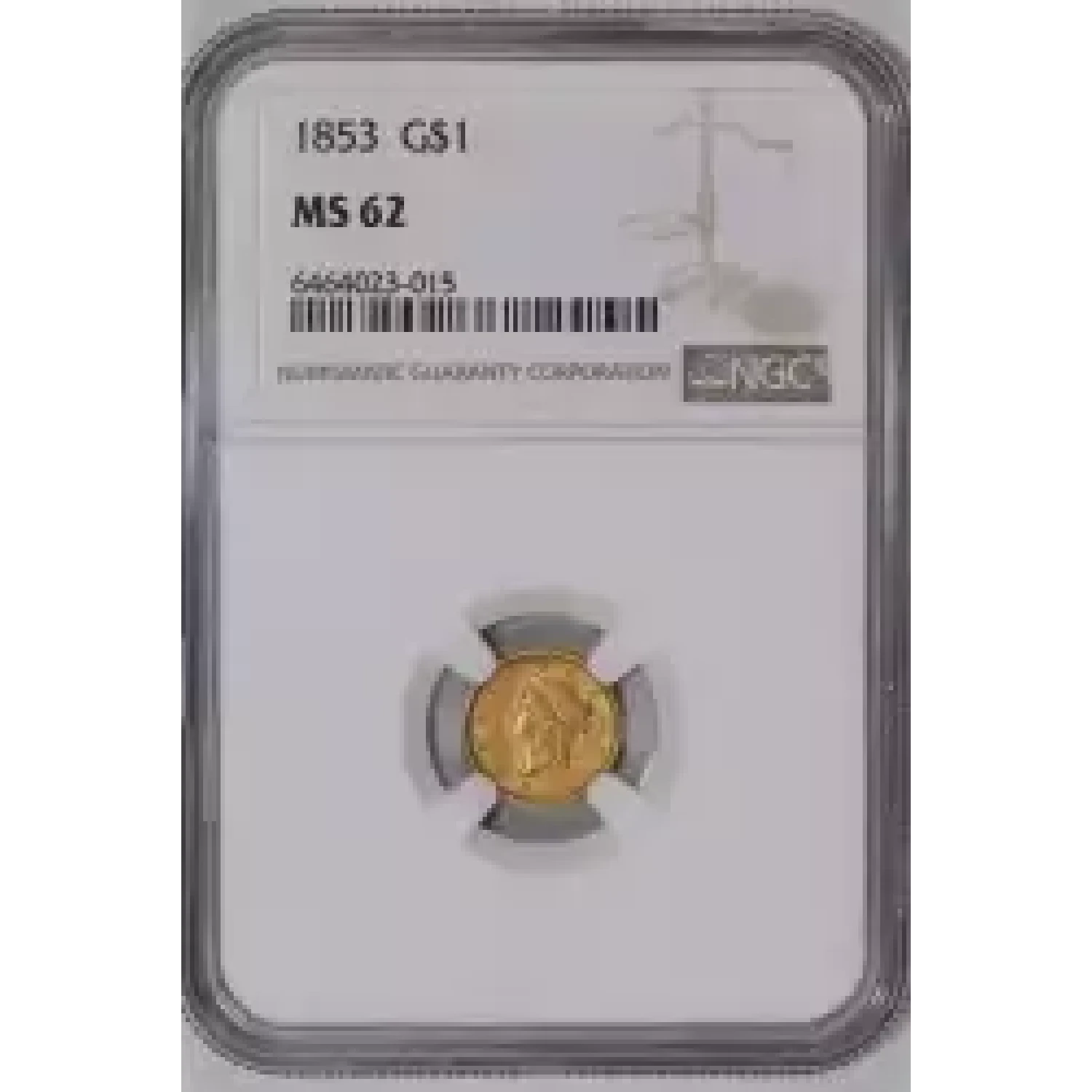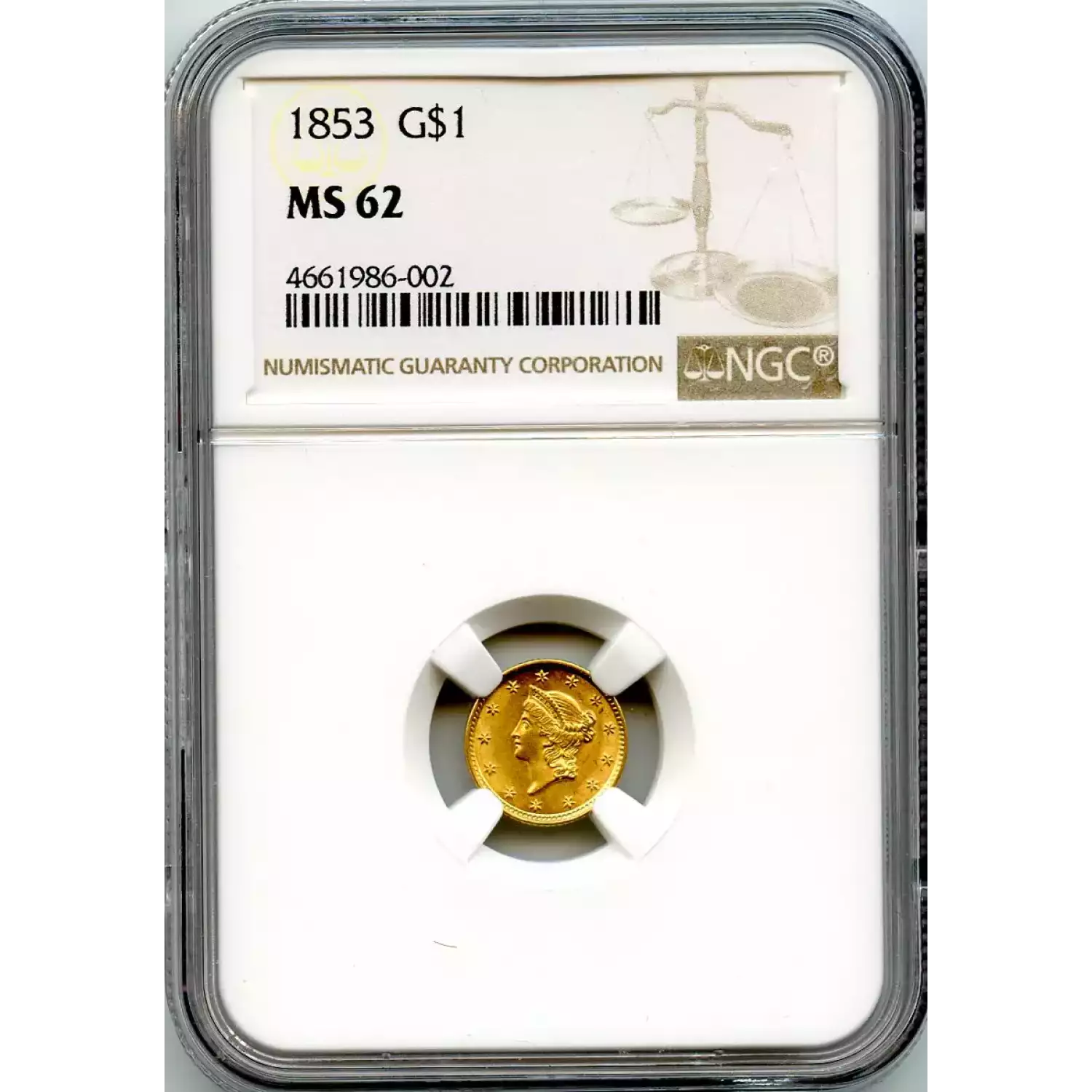 502579 | 1853 Gold Dollars Liberty Head NGC MS-62 | NGC | MS-62 | Sold: 03/10/2022 | $550 |