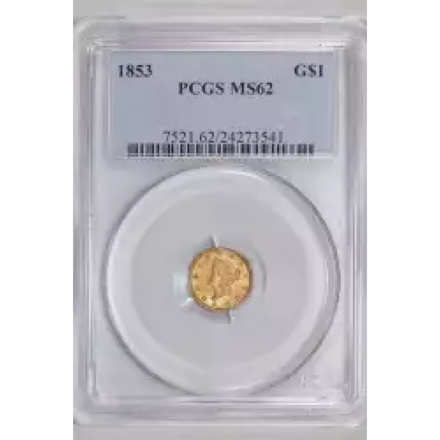 502795 | 1853 Gold Dollars Liberty Head PCGS MS-62 | PCGS | MS-62 | Sold: 08/03/2024 | $550 |