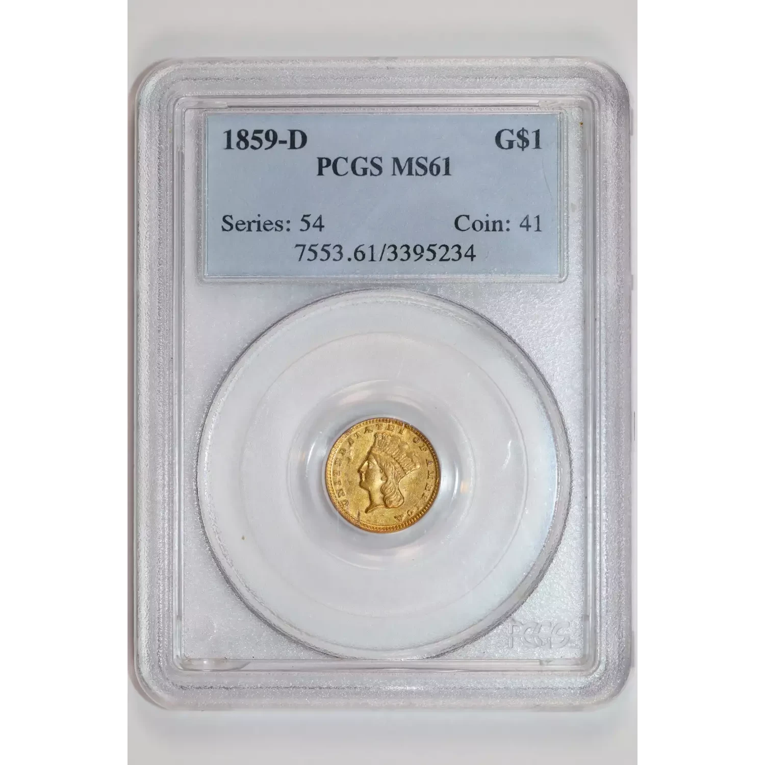 535356 | 1859-D Indian Princess Large Head Gold Dollar PCGS MS-61 | PCGS | MS-61 | Sold: 23/10/2025 | $11,500 |