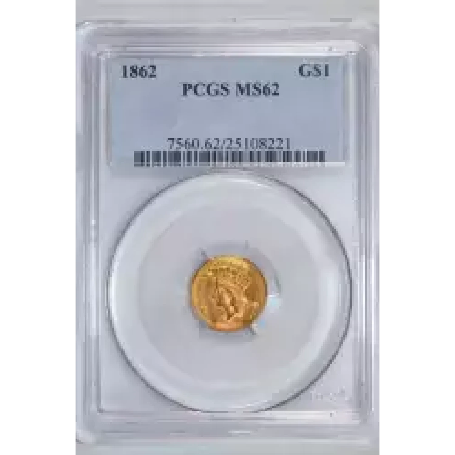 502787 | 1862 Indian Princess Large Head Gold Dollar PCGS MS-62 | PCGS | MS-62 | Sold: 09/02/2023 | $675 |