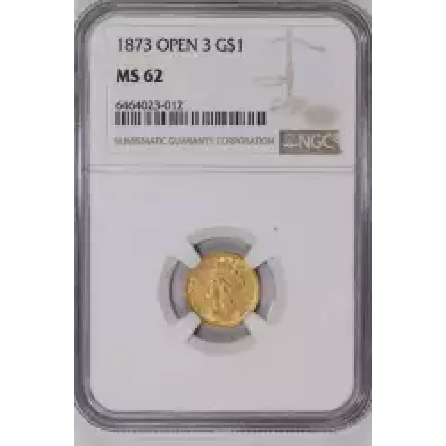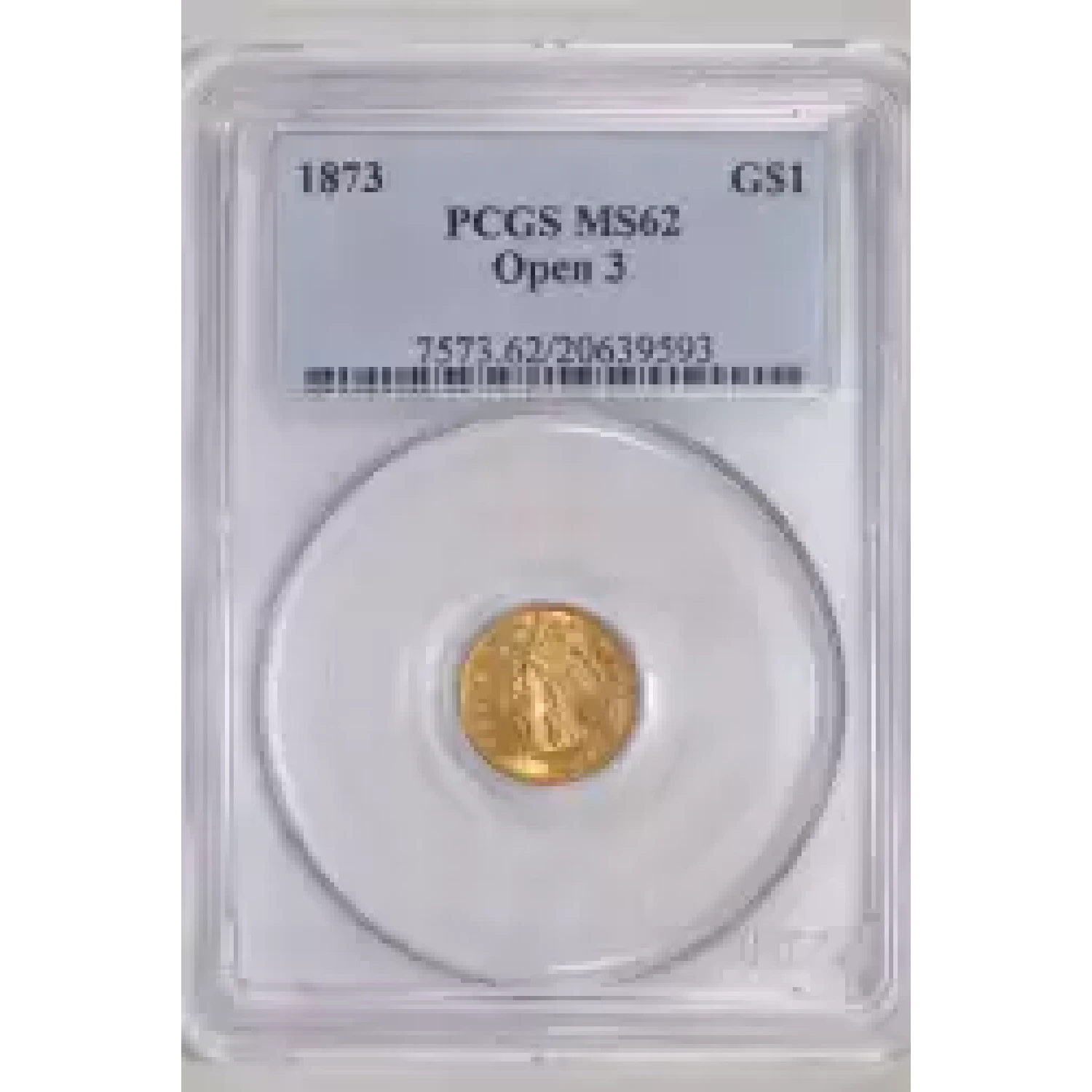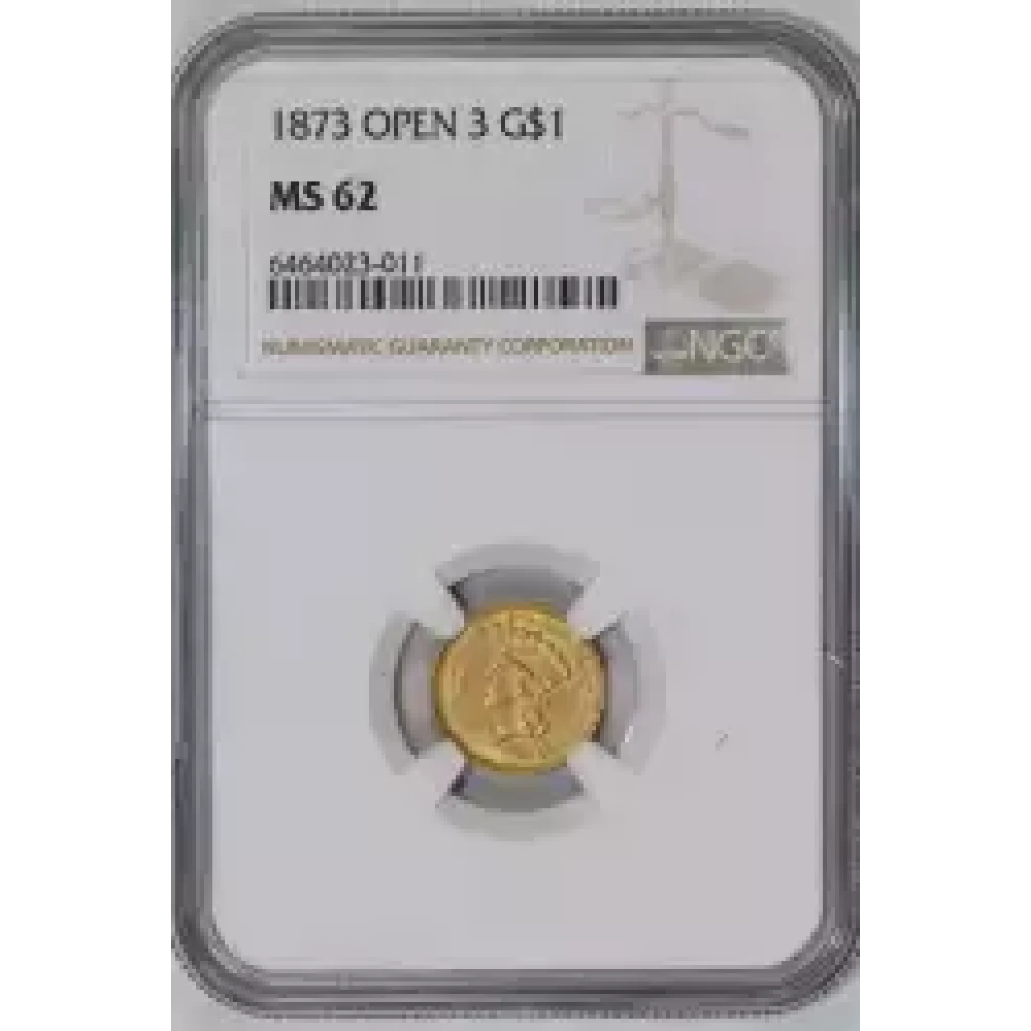 502797 | 1873 Indian Princess Large Head Gold Dollar PCGS MS-62 Open 3 | PCGS | MS-62 | Sold: 09/02/2023 | $650 |