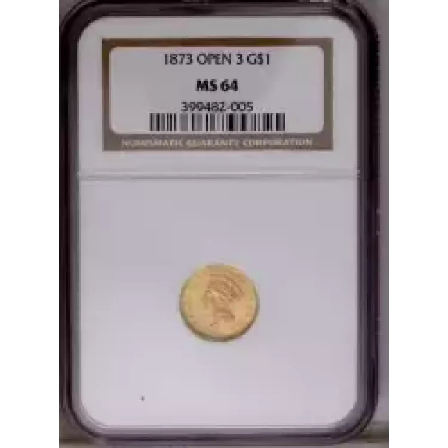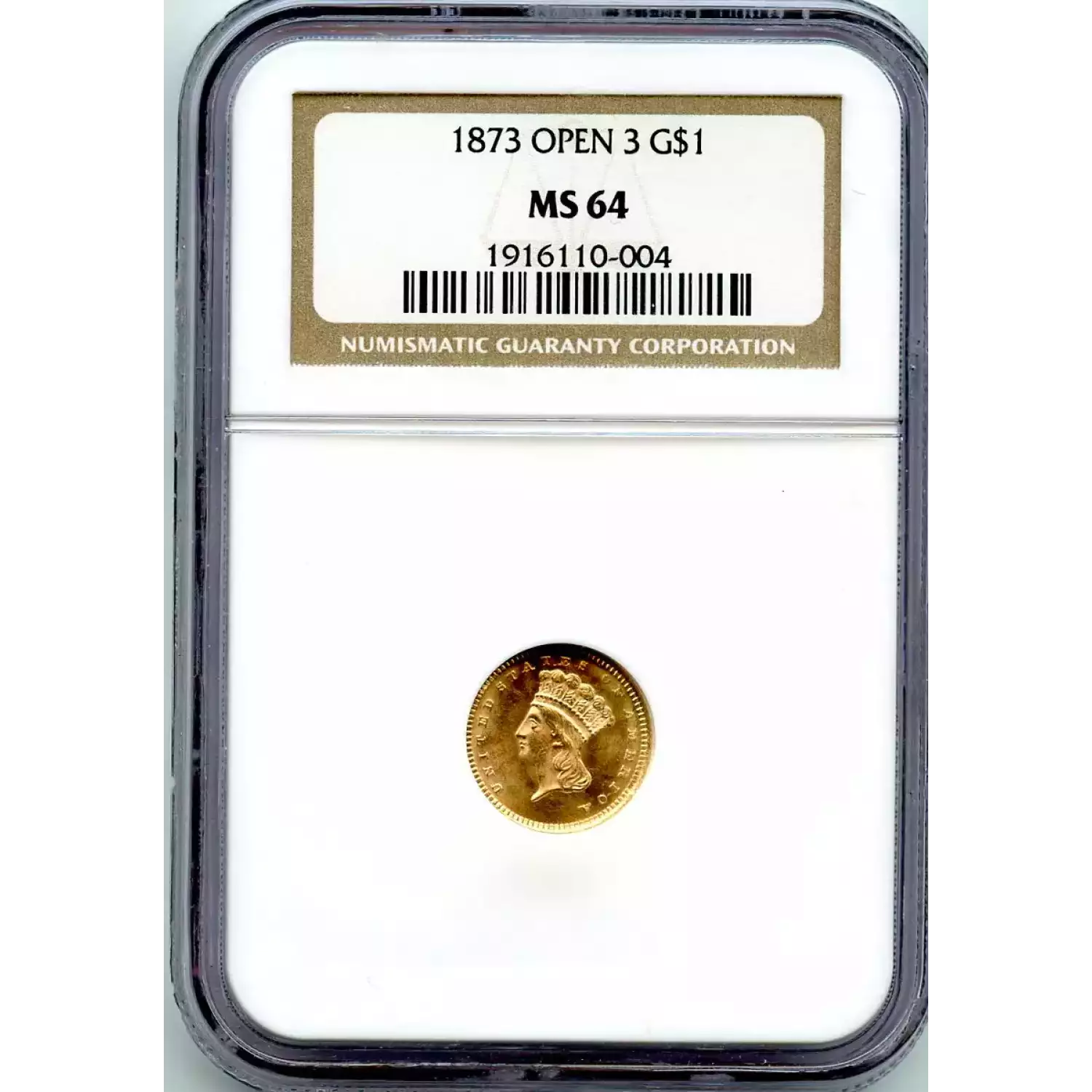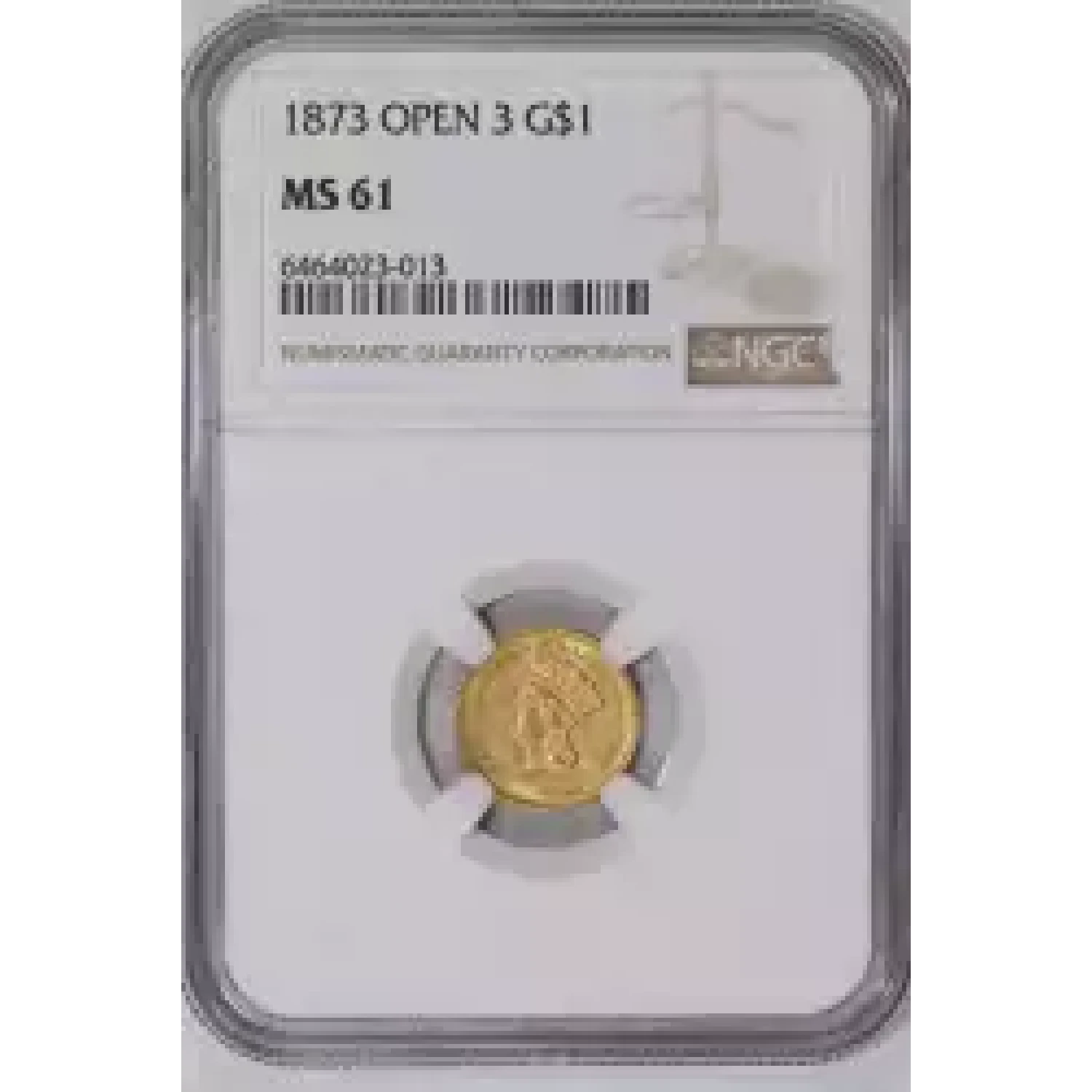 502797 | 1873 Indian Princess Large Head Gold Dollar PCGS MS-62 Open 3 | PCGS | MS-62 | Sold: 09/02/2023 | $650 |